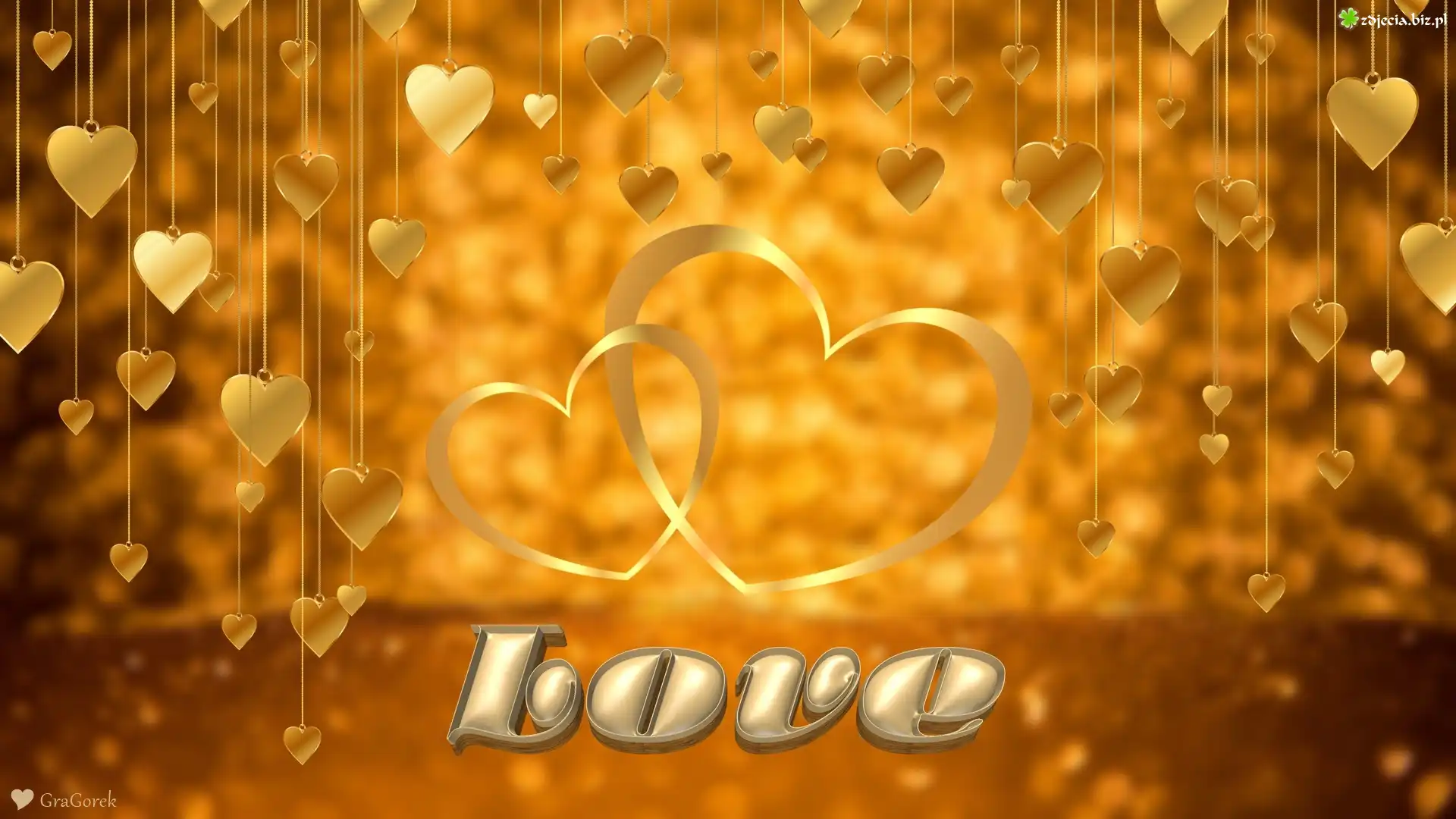 Zdjęcie Serca, Złote, Serduszka, Napis, Love, Grafika