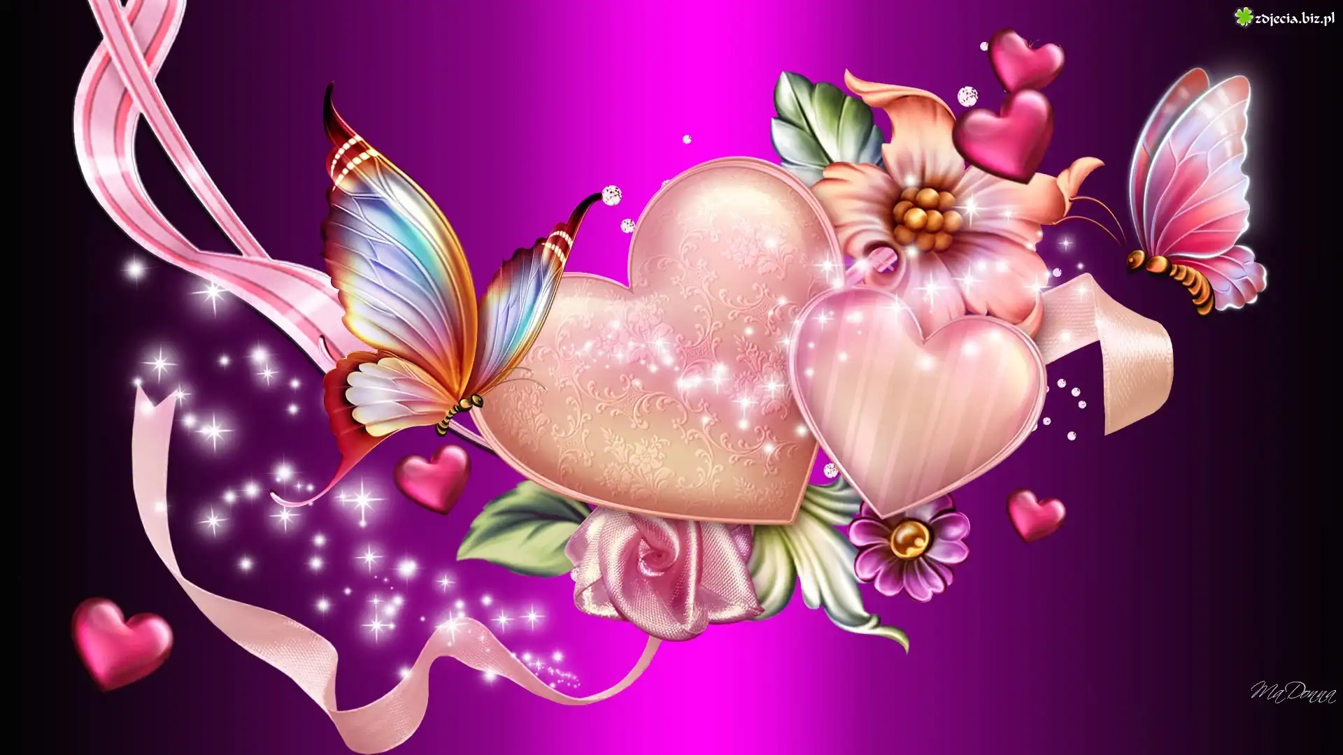 Zdjęcie Serca, Motyle, Walentynki, Art