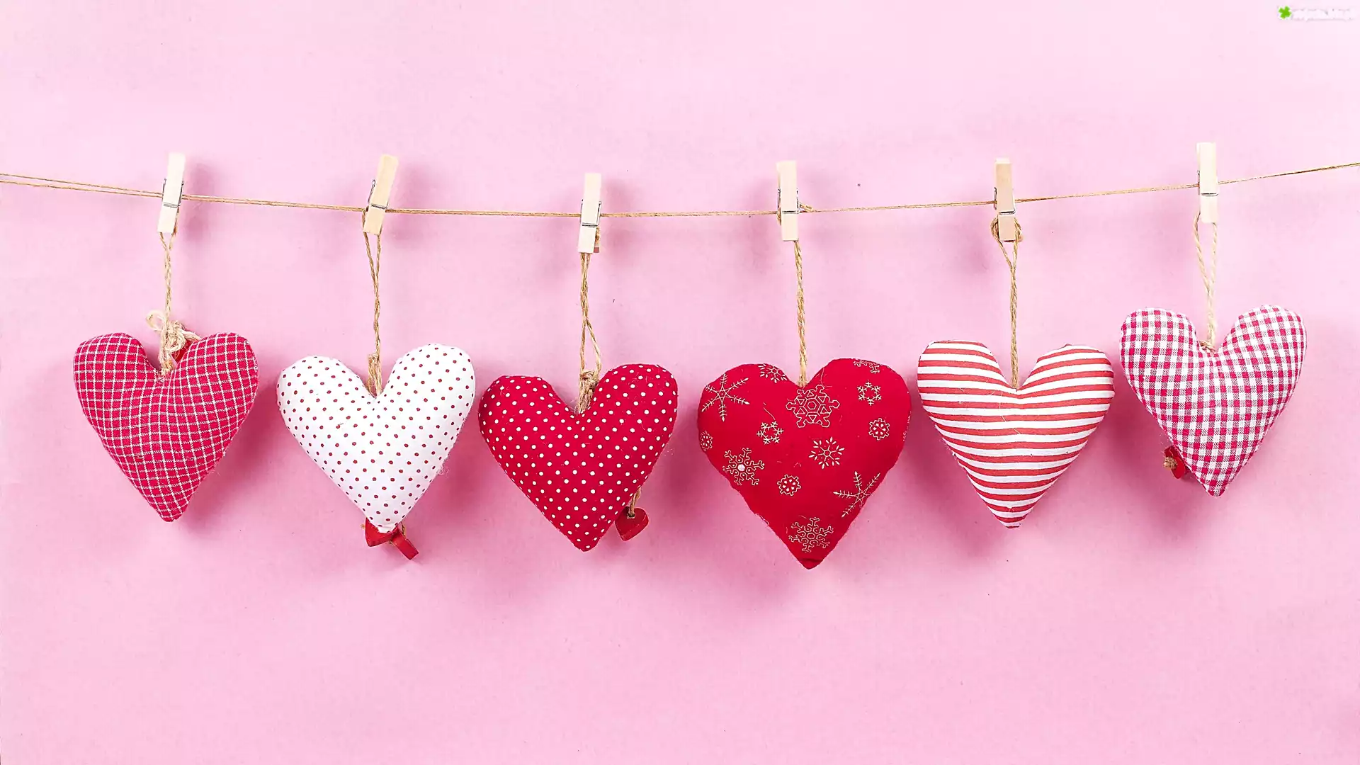 Zdjęcie Walentynki, Serca, Wiszące, Sznurek, Klamerki, Różowe, tło