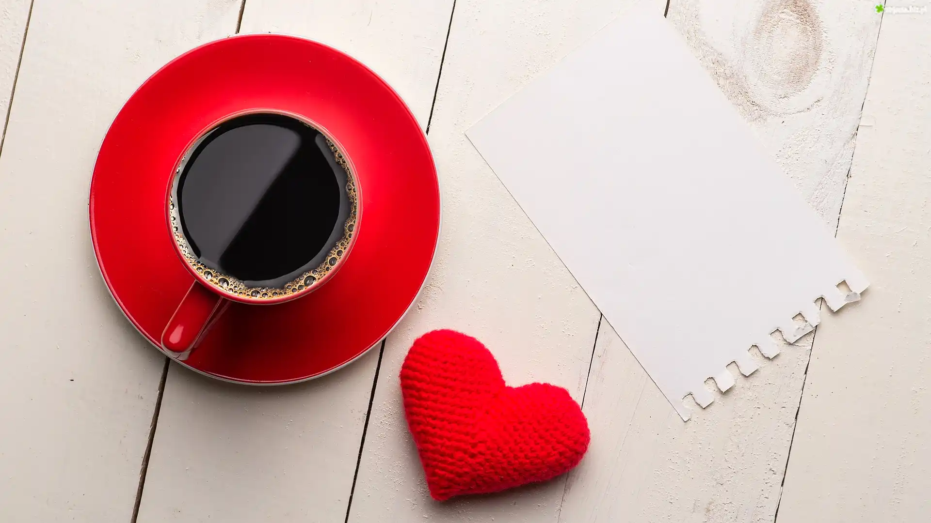 Zdjęcie Serce, Miłość, Kawa, Kartka, Czerwona, Filiżanka