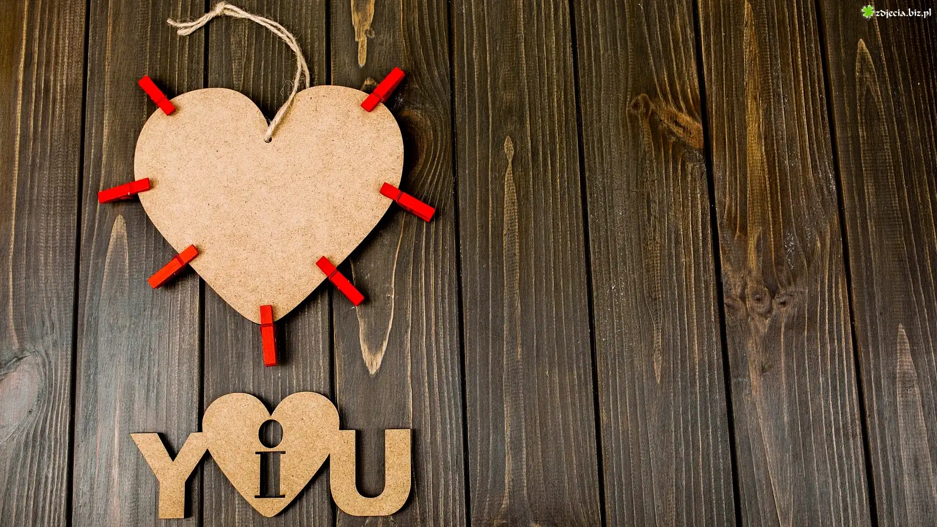Zdjęcie Serce, Napis, Klamerki, Deski