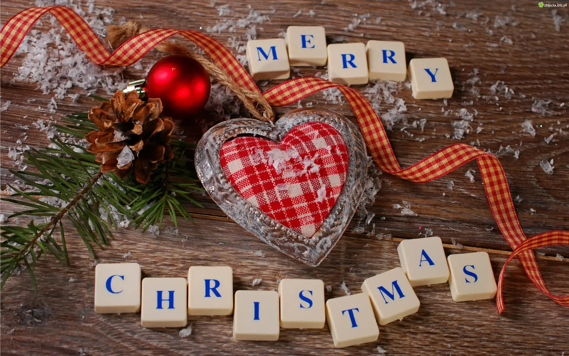 Zdjęcie, Serce, Bombki, Gałązka, Szyszka, Kompozycja, Świąteczna