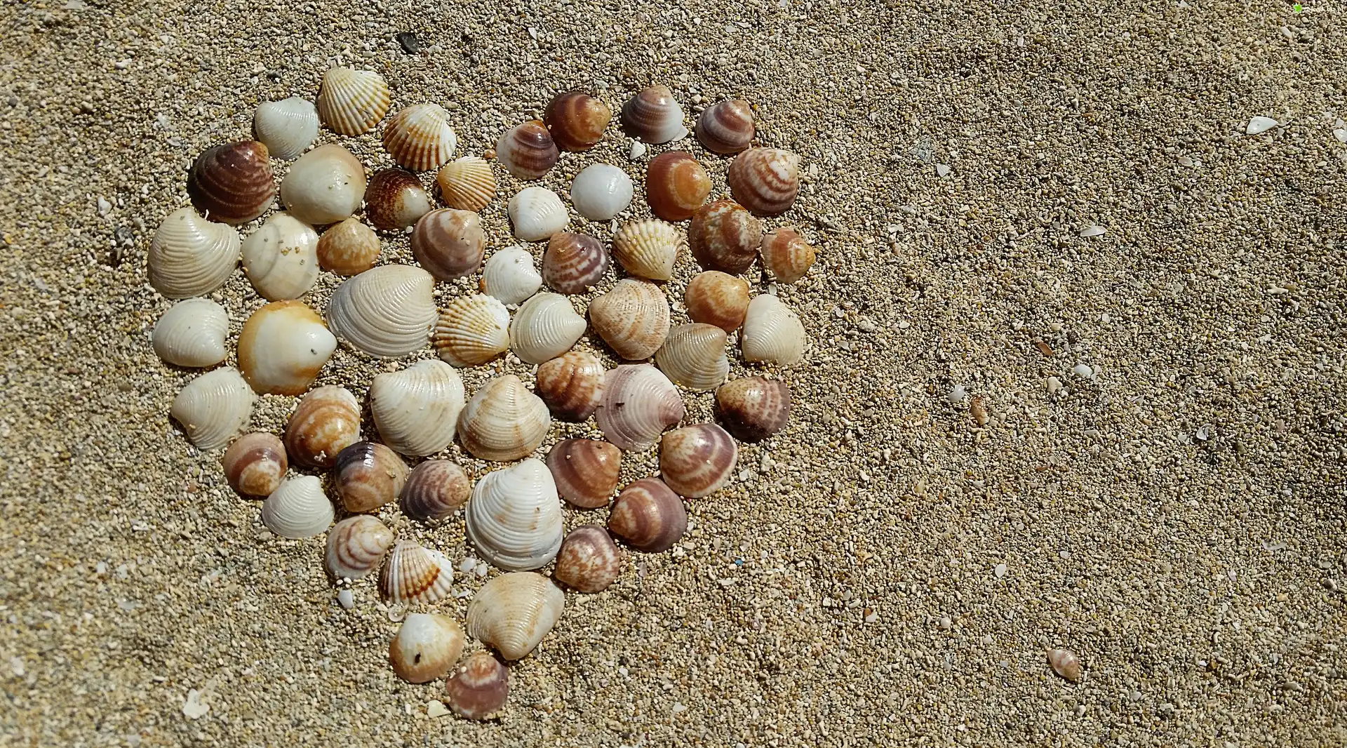 Zdjęcie Serce, Muszelki, Miłość, Piasek
