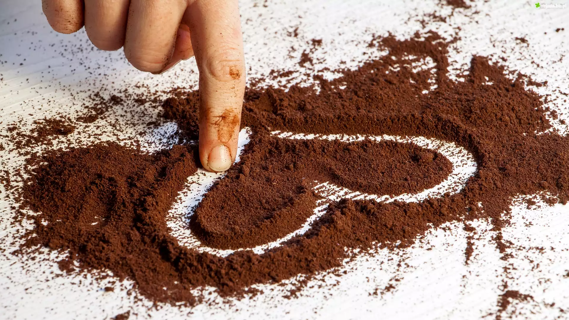Zdjęcie, Miłość, Serce, Kawa, Rozsypana, Deski, Białe, Palec