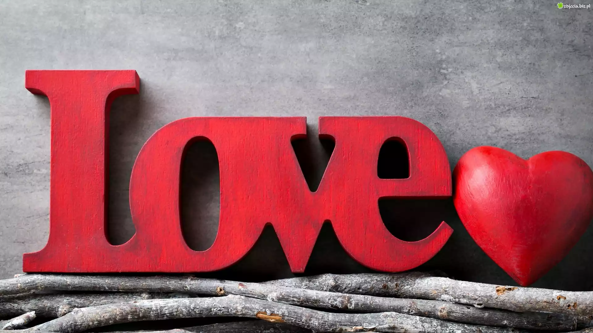 Zdjęcie Walentynki, Serce, Czerwone, Napis, Love, Miłość, Patyki