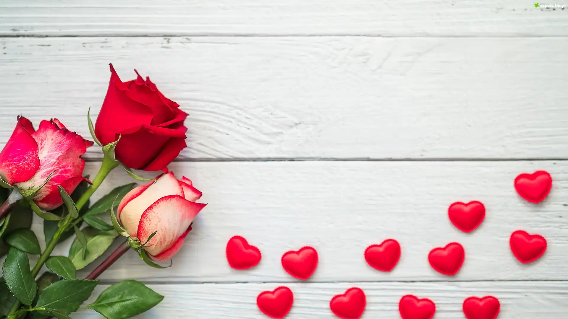 Zdjęcie Róże, Serduszka, Deski
