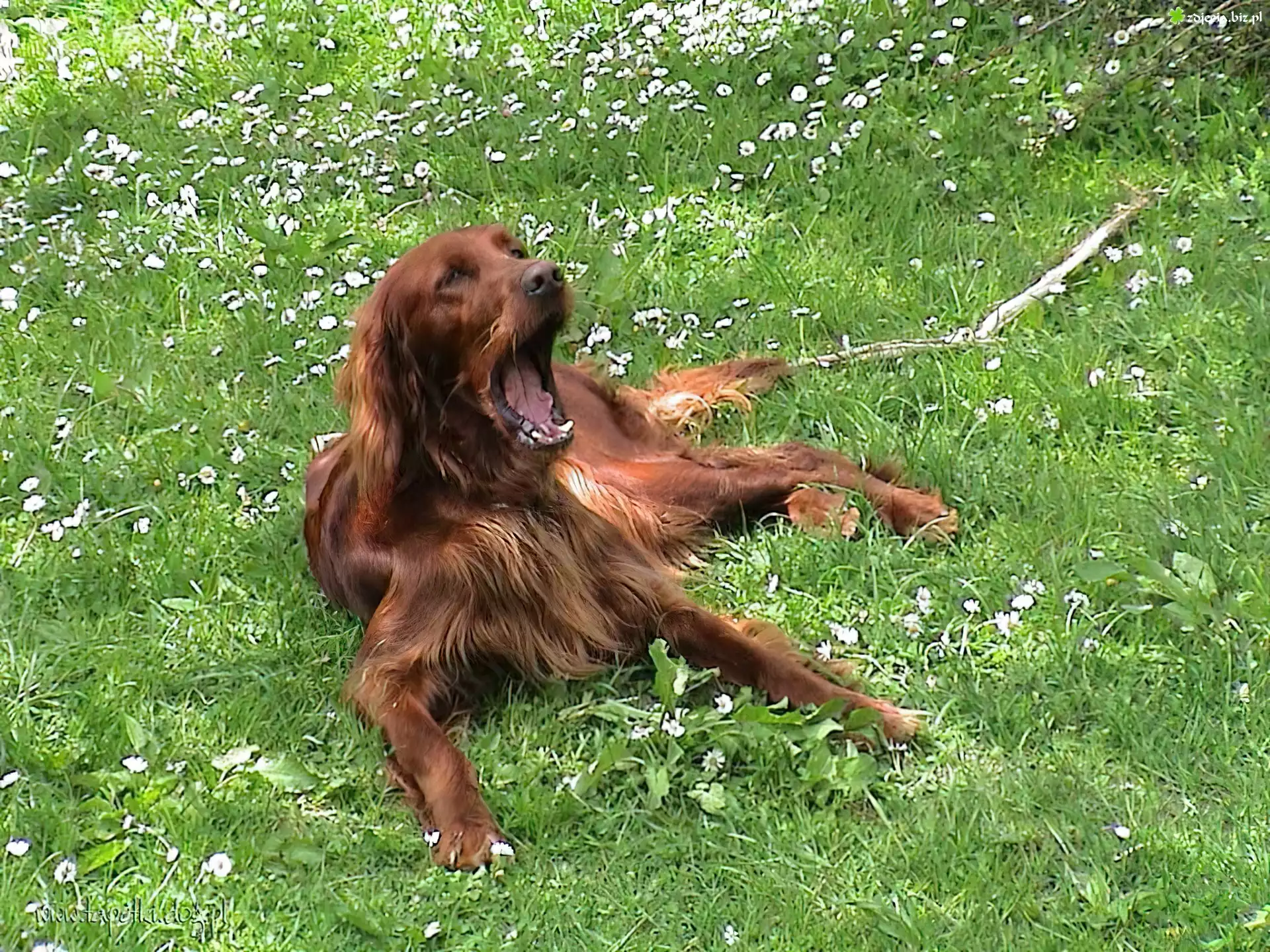 Zdjęcie ziewający, Seter irlandzki