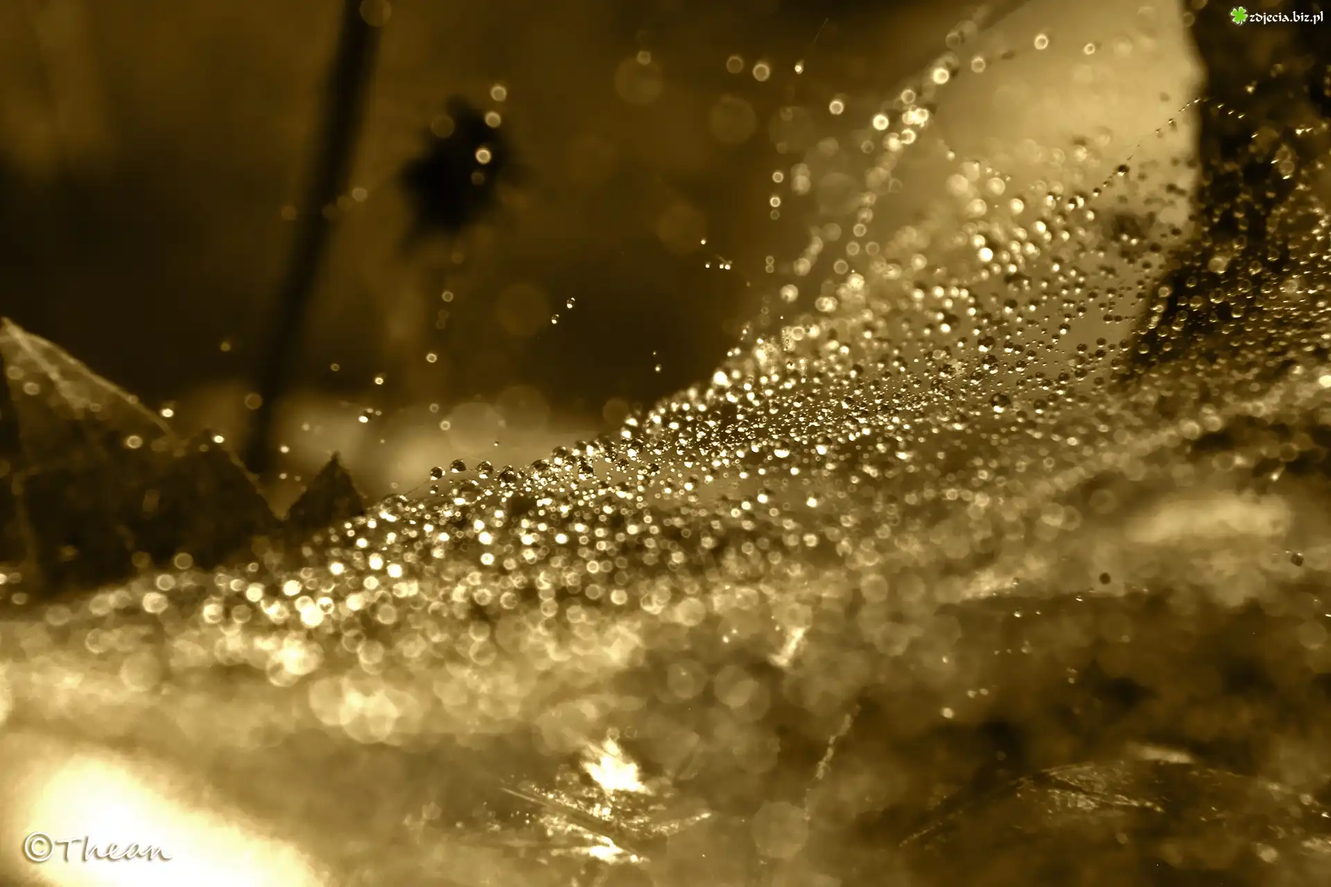 Zdjęcie Sieć, Pajęczyna, Kropelki, Sepia