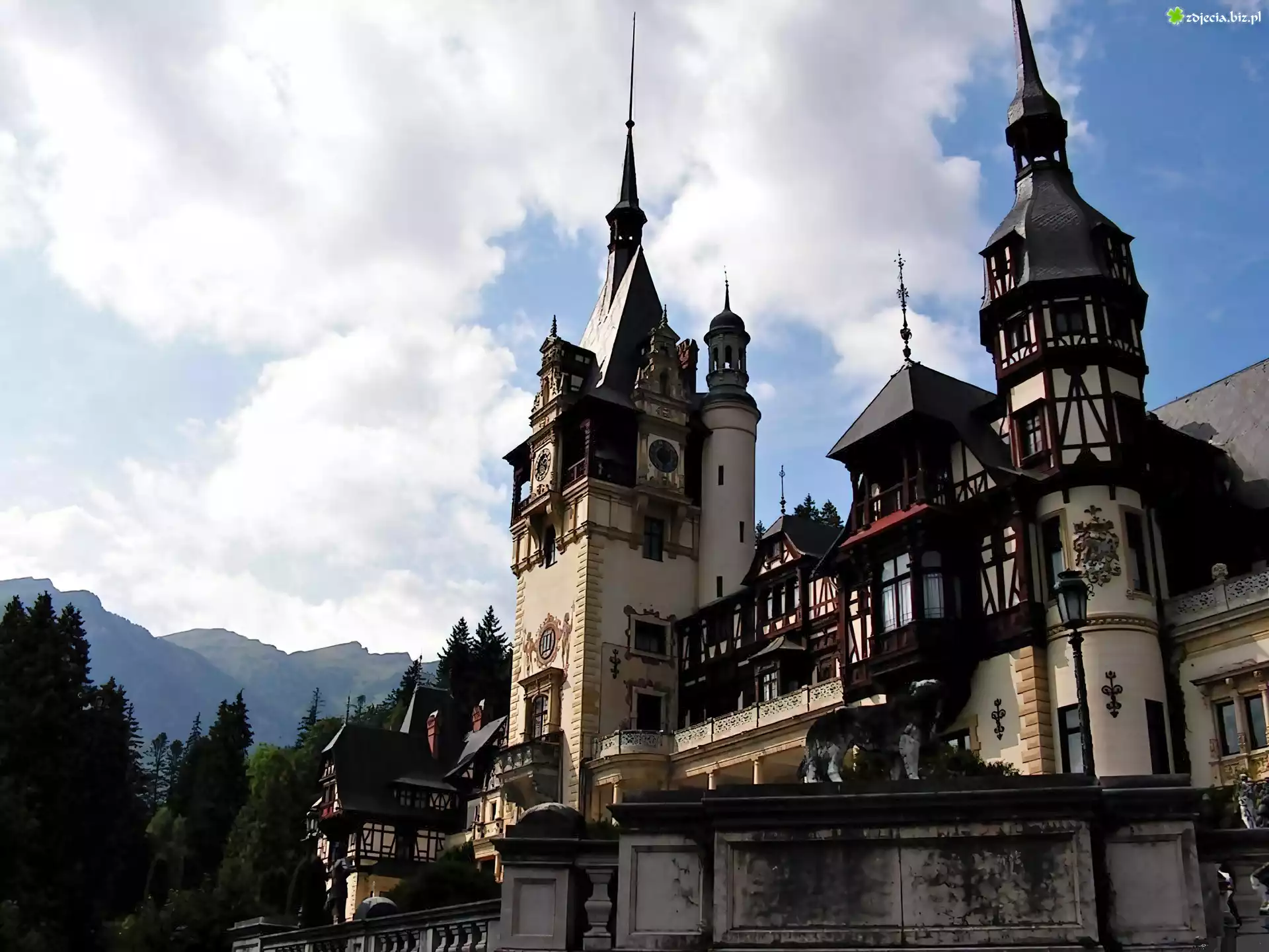Zdjęcie Sinaia, Pałac Peles, Góry, Las, Obłoki, Rumunia