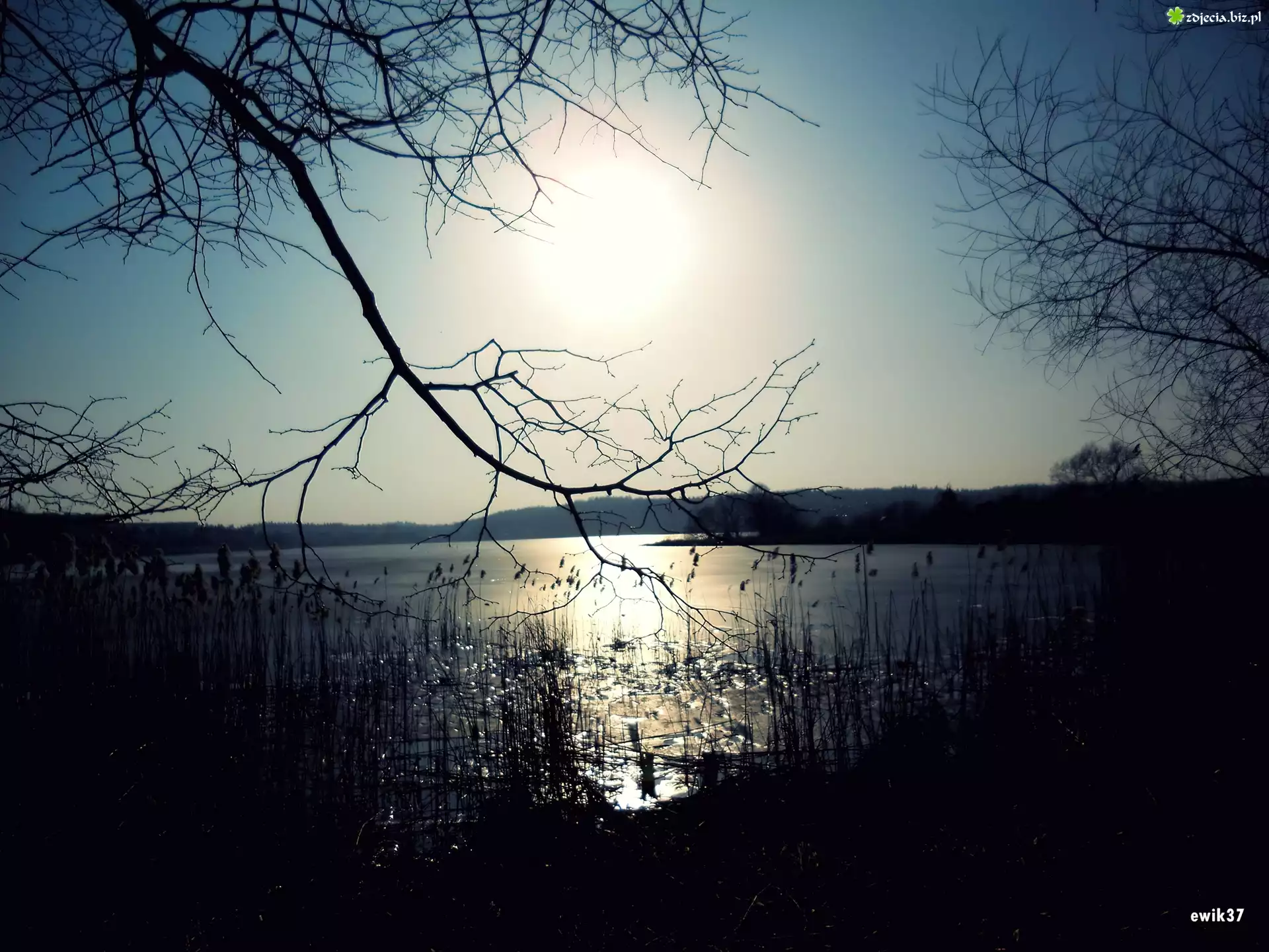 Zdjęcie Sitowie, Jezioro, Drzewa, Słońce
