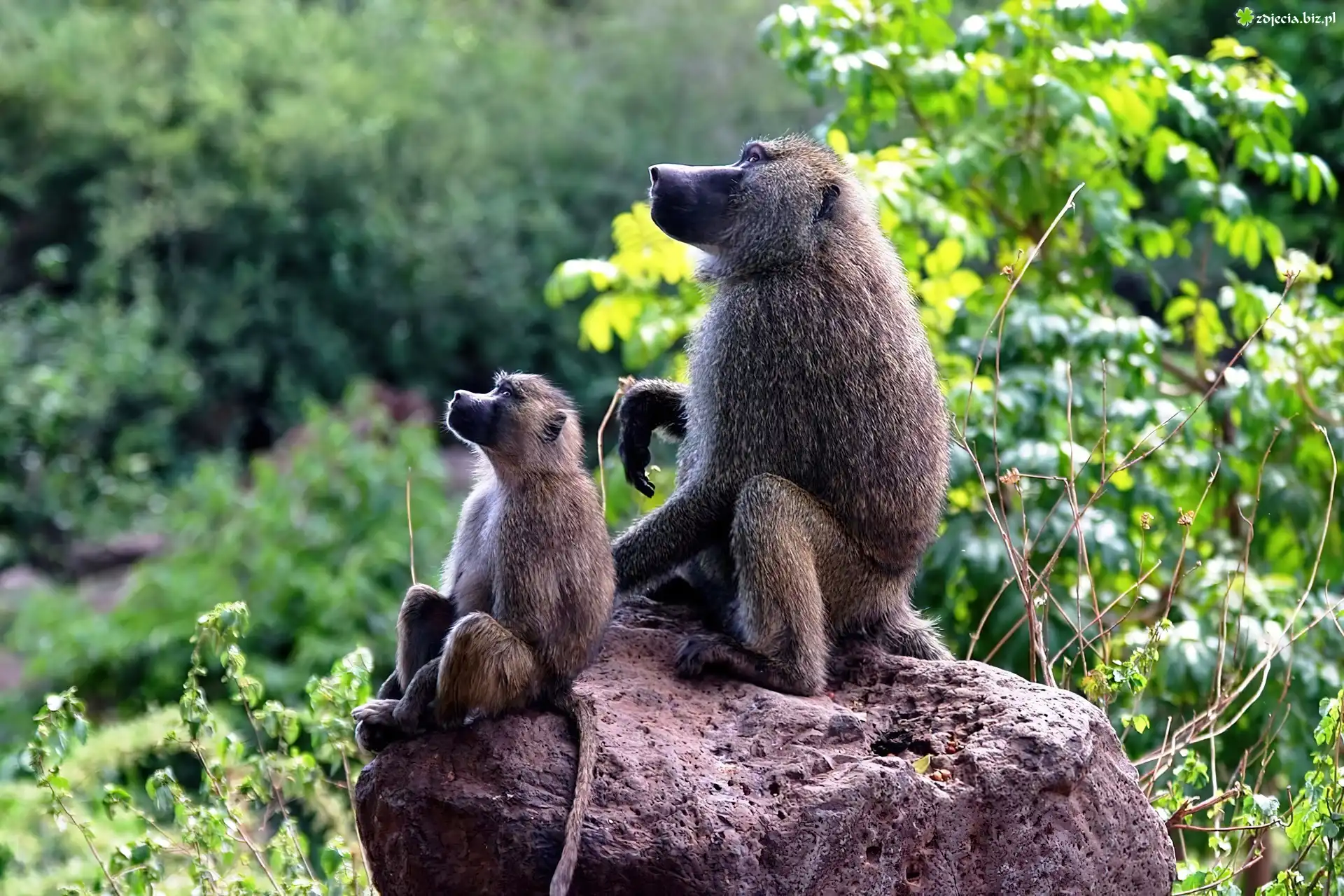 Zdjęcie, Pawiany, Skała, Roślinność