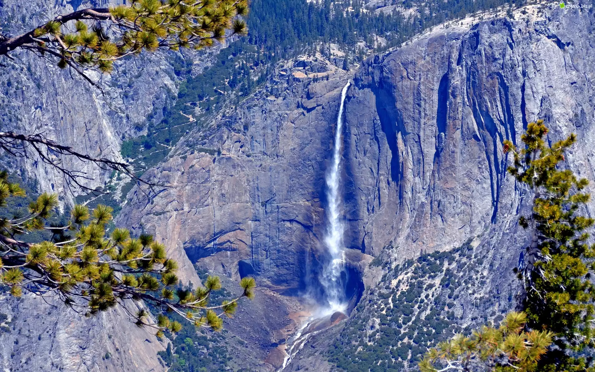 Zdjęcie, Skaliste, Góry, Wodospad,, Lasy, Jesień