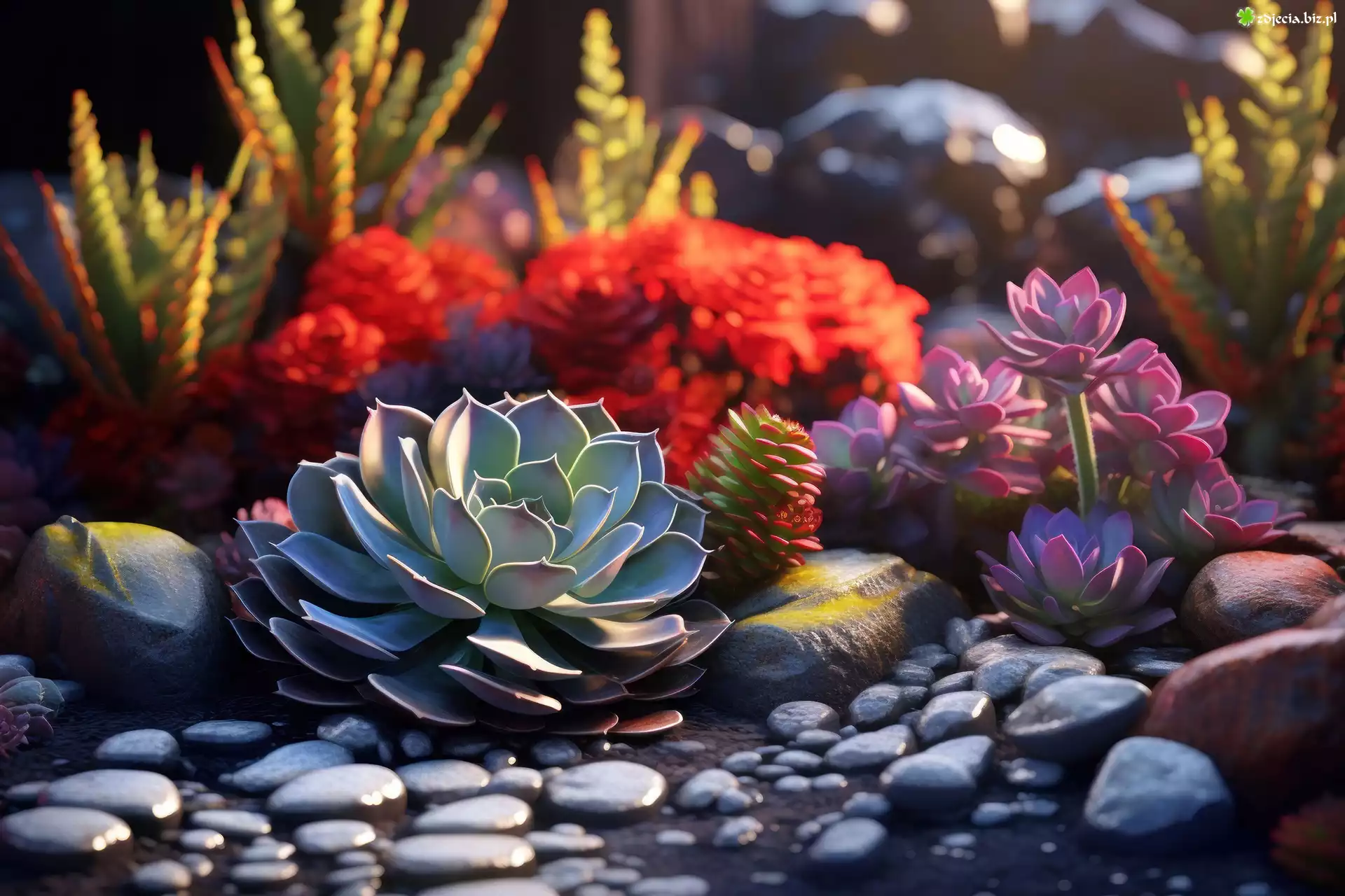 Zdjęcie, Rośliny, Eszeweria, Kamienie, Skalniak, Światło, Grafika
