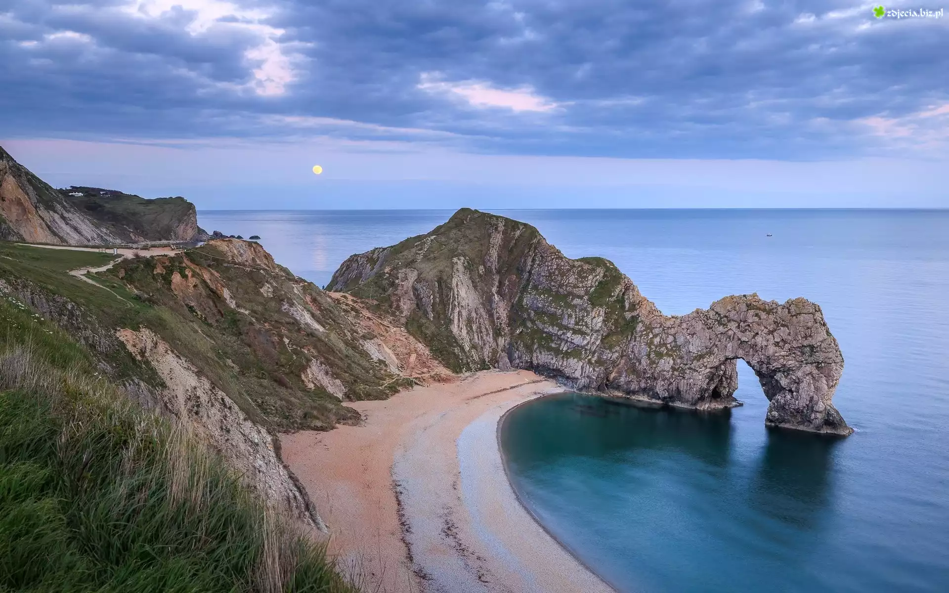 Zdjęcie Anglia, Hrabstwo Dorset, Morze, Wybrzeże Jurajskie, Skały, Plaża, Łuk skalny, Durdle Door