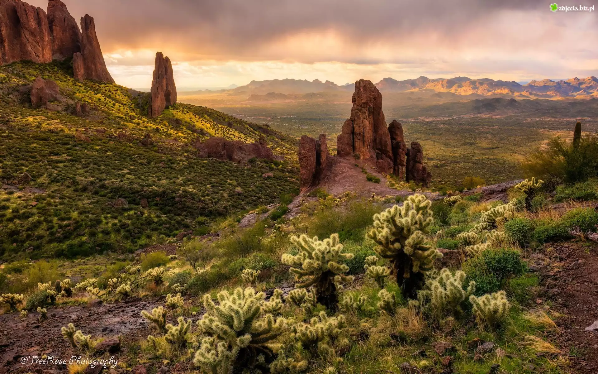 Zdjęcie Stany Zjednoczone, Arizona, Skały, Roślinność, Kaktusy Cholla