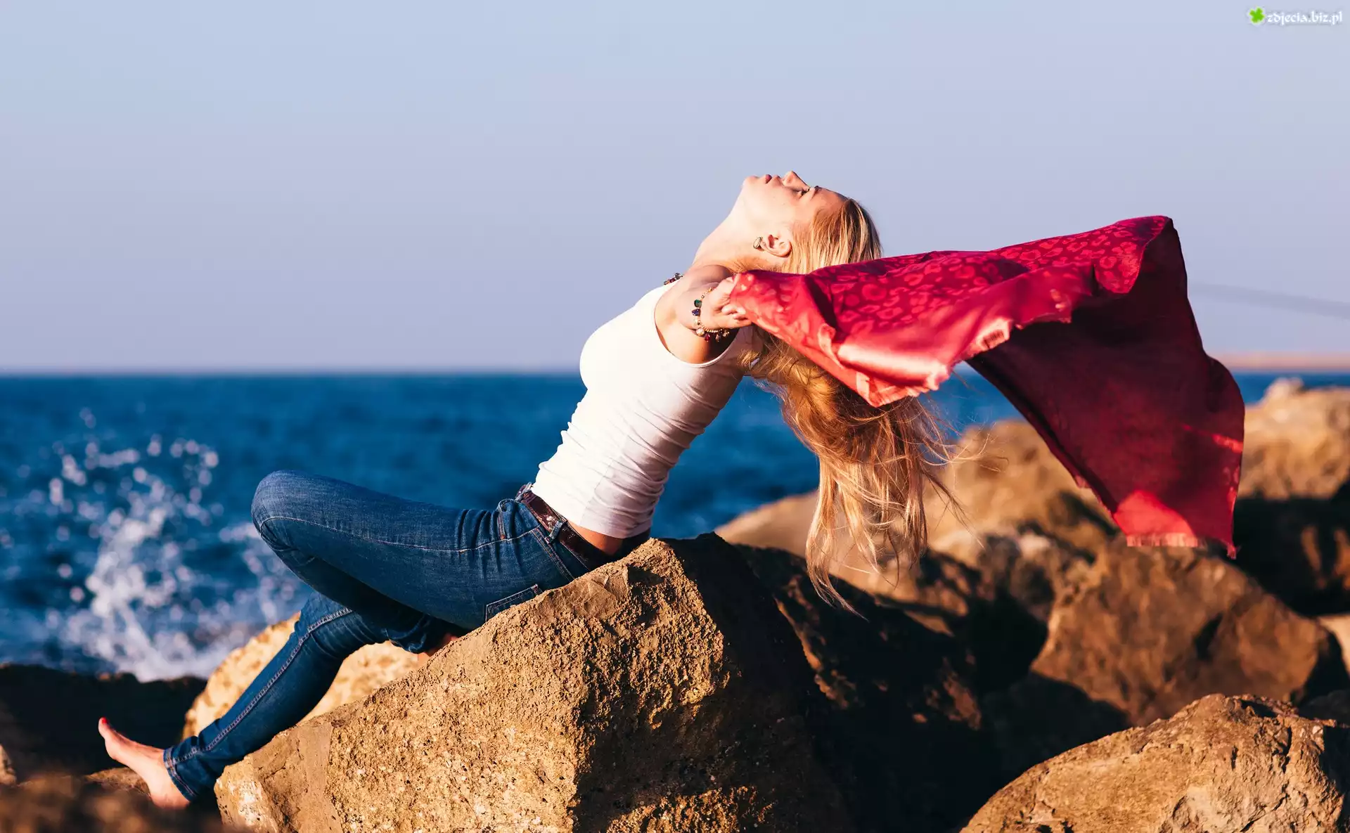 Zdjęcie Blondynka, Skały, Morze