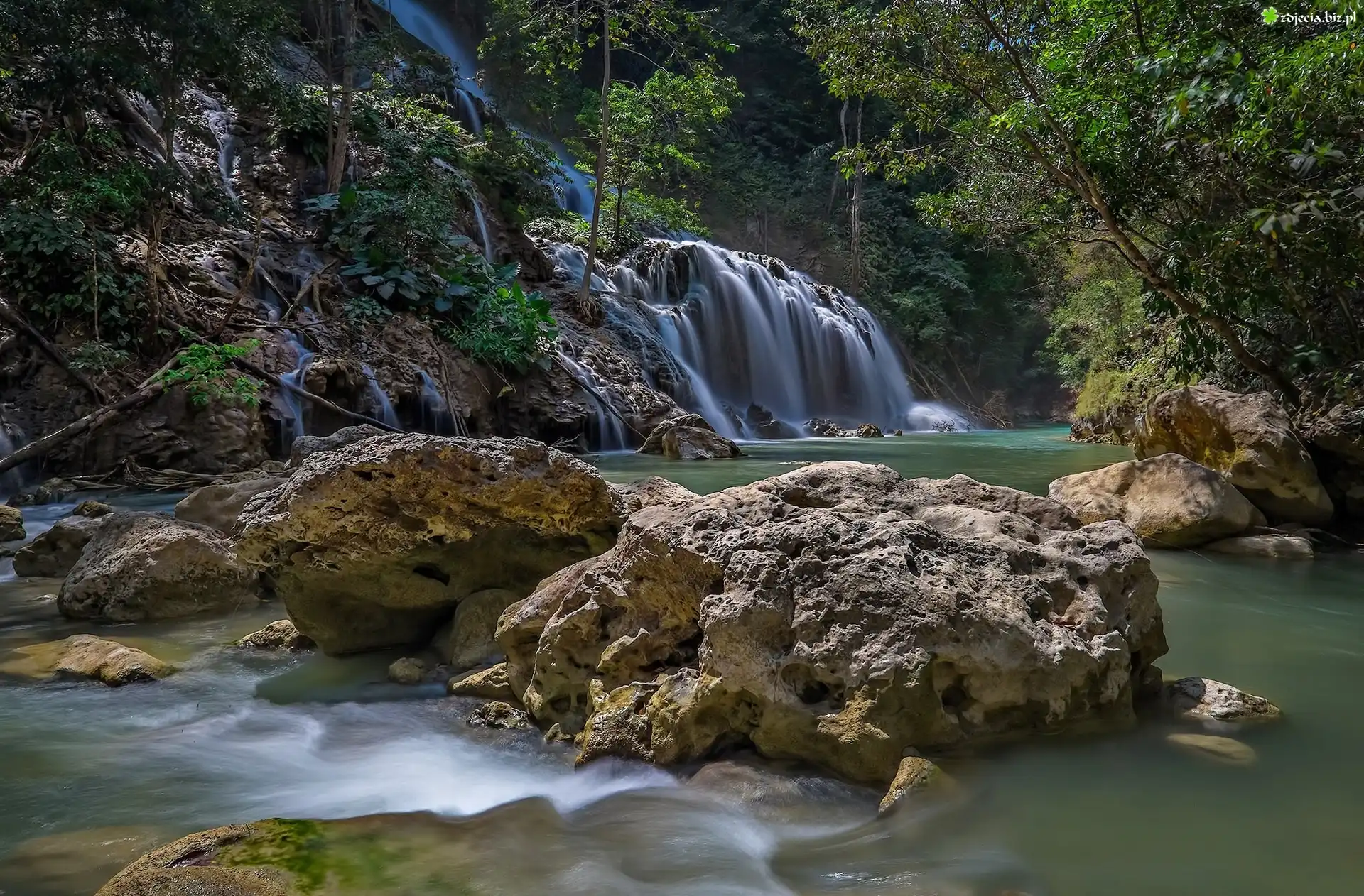 Zdjęcie, Skały, Wodospad, Drzewa, Rzeka