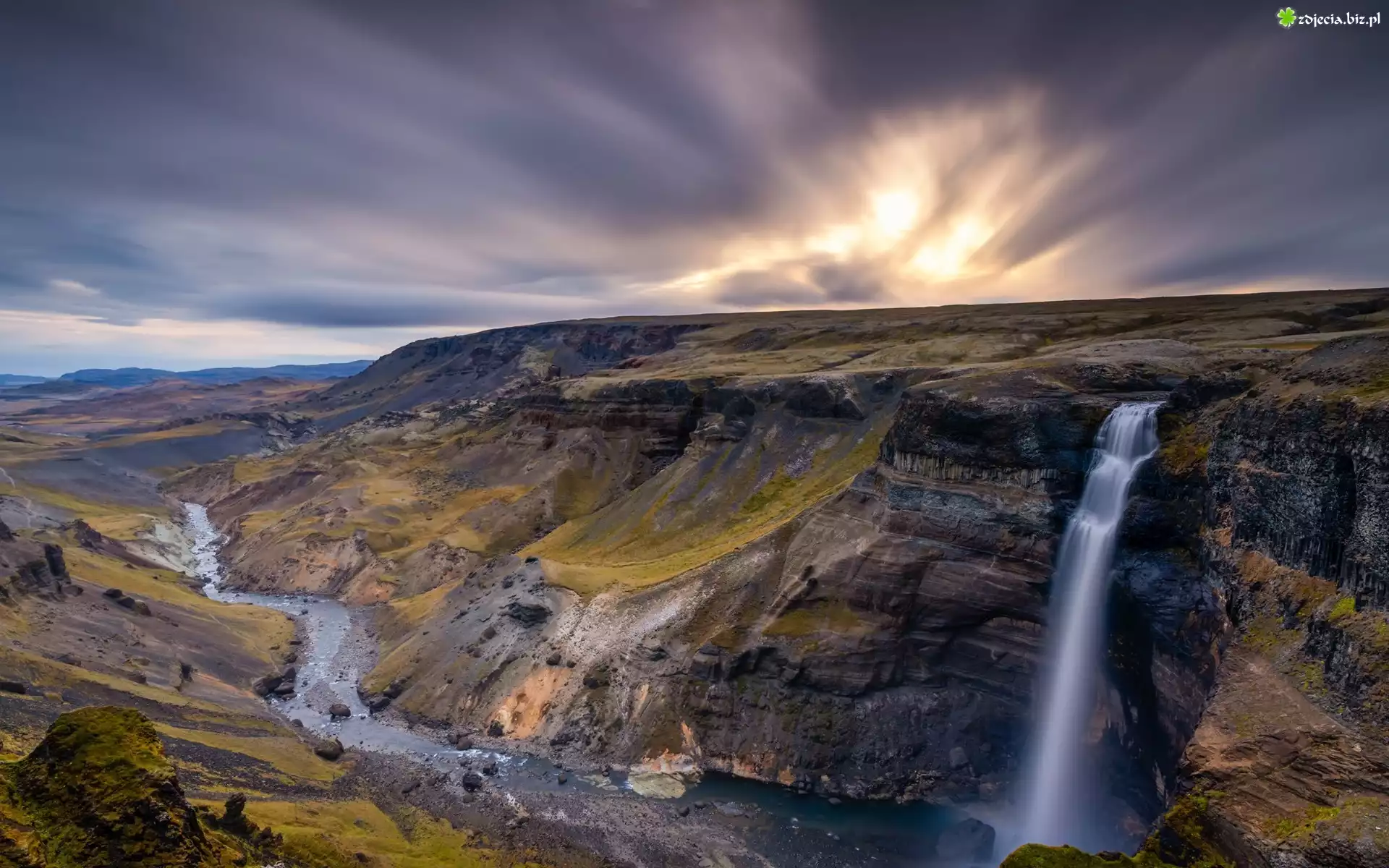 Zdjęcie Islandia, Rzeka Fossa, Wodospad Haifoss, Chmury, Góry, Skały