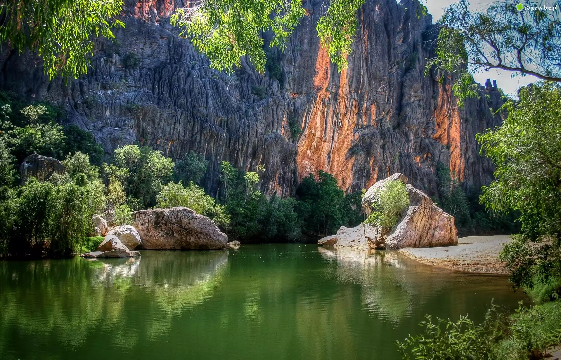 Zdjęcie, Skały, Jezioro, Gałęzie, Drzew