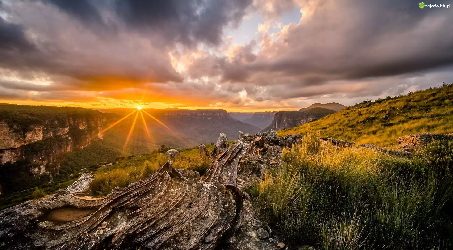 Zdjęcie Australia, Nowa Południowa Walia, Góry Blue Mountains, Zachód Słońca, Skały
