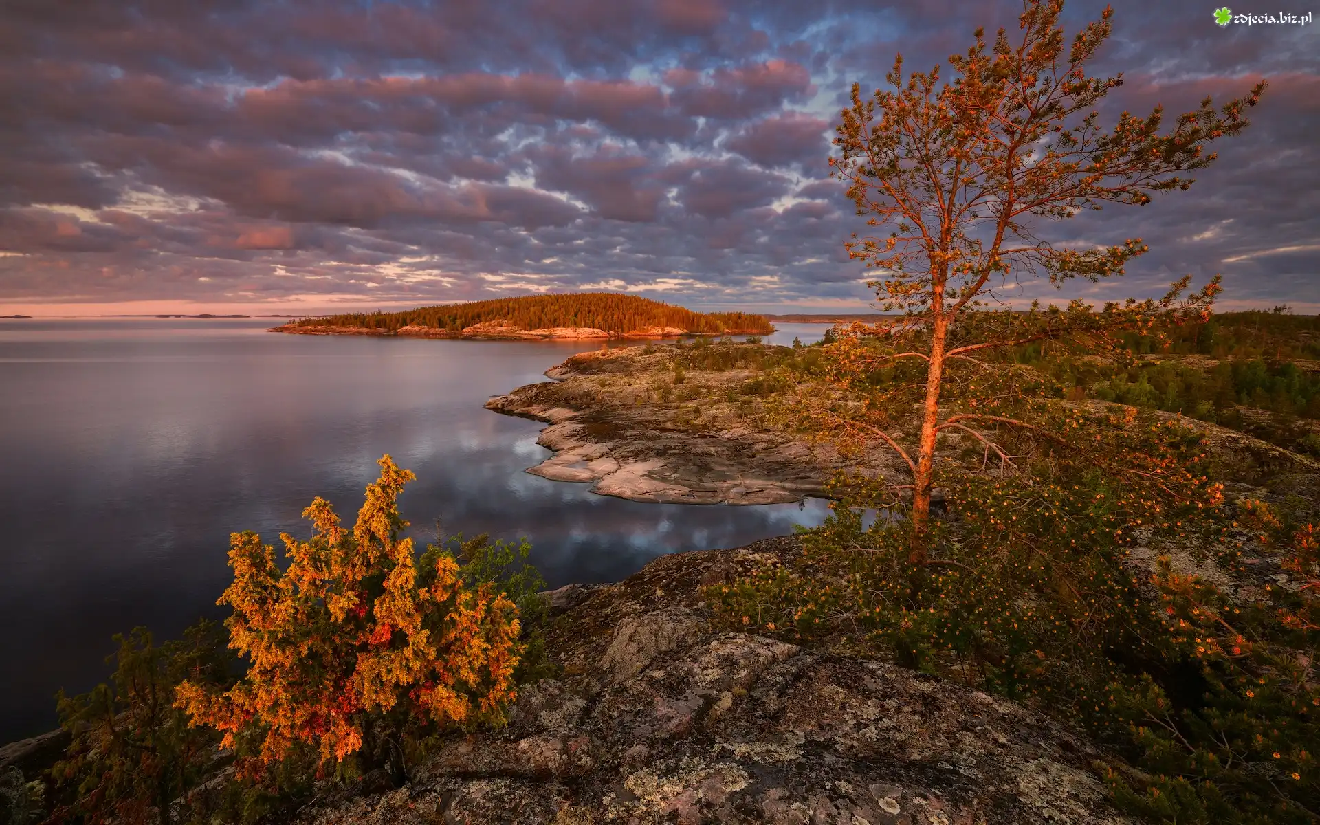 Zdjęcie, Rosja, Karelia, Jezioro, Ładoga, Jesień, Drzewa, Roślinność, Skały
