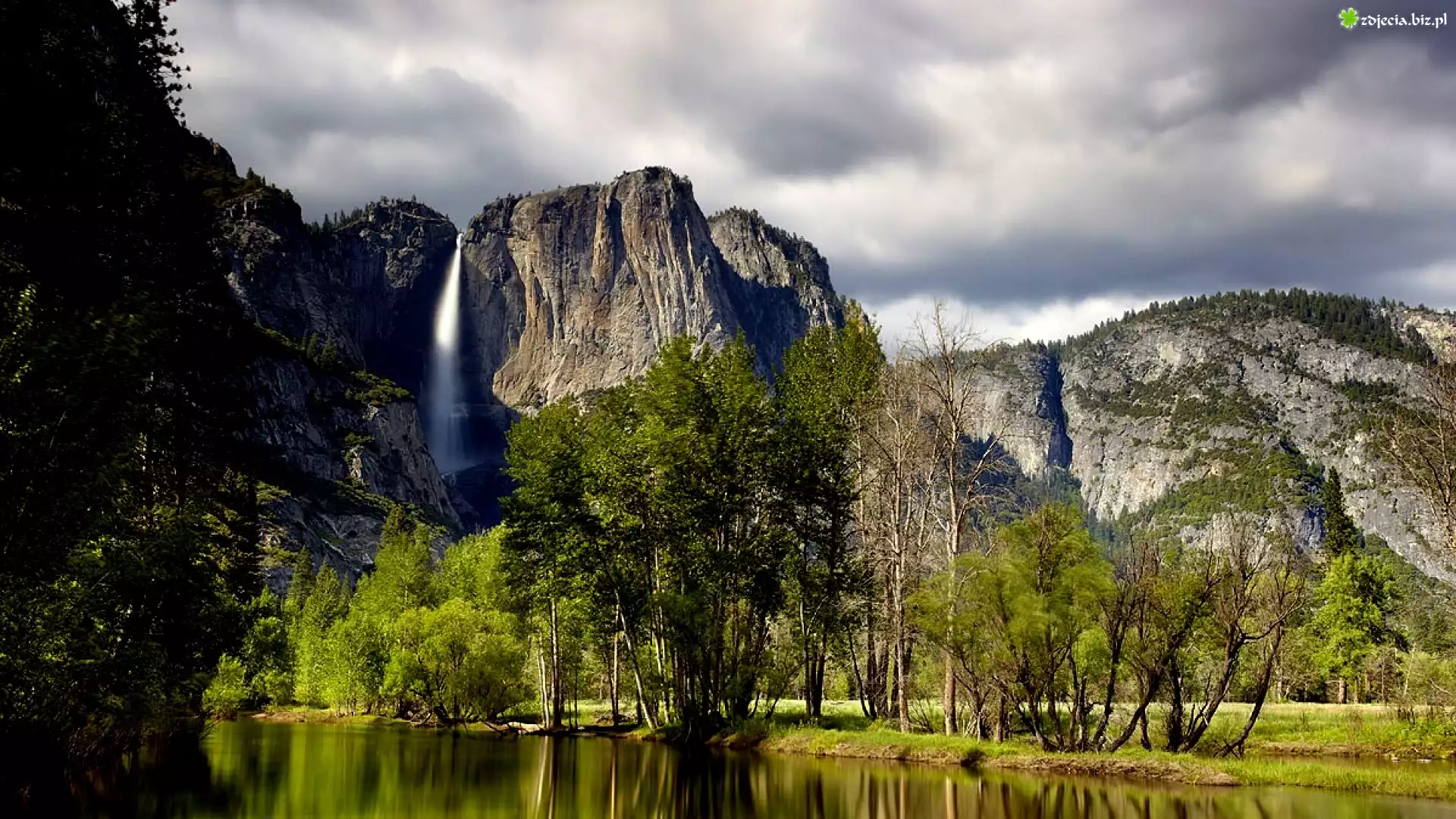 Zdjęcie Skały, Wodospad, Jezioro, Drzewa