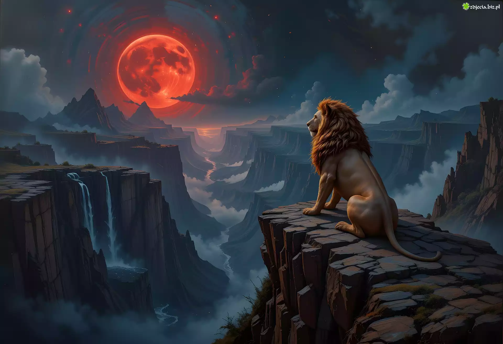 Zdjęcie Lew, Skały, Księżyc, Kanion, Wodospady
