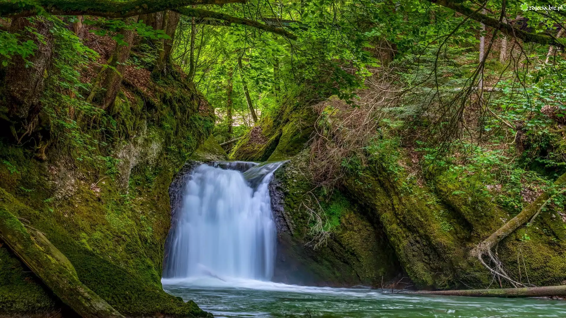 Zdjęcie Porośnięte, Skały, Las, Wodospad, Rzeka
