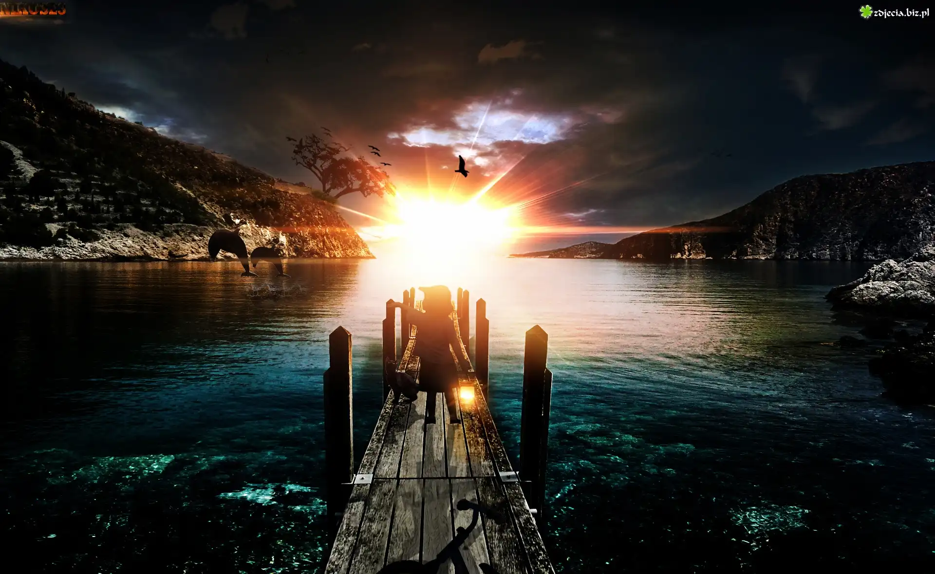 Zdjęcie Skały, Jezioro, Promienie, Słońca, Mały, Chłopczyk
