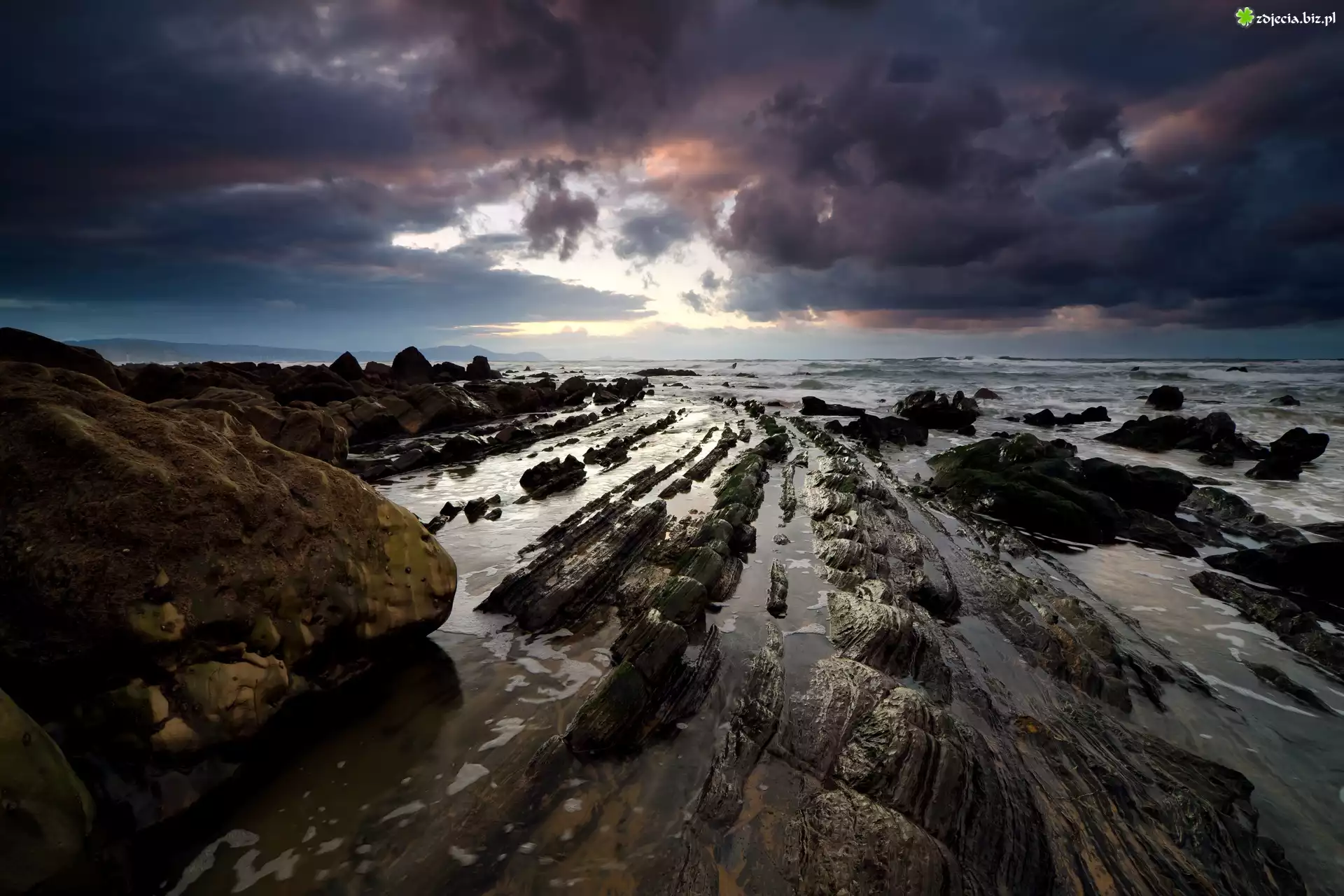 Zdjęcie Skały, Chmury, Morze, Wybrzeże