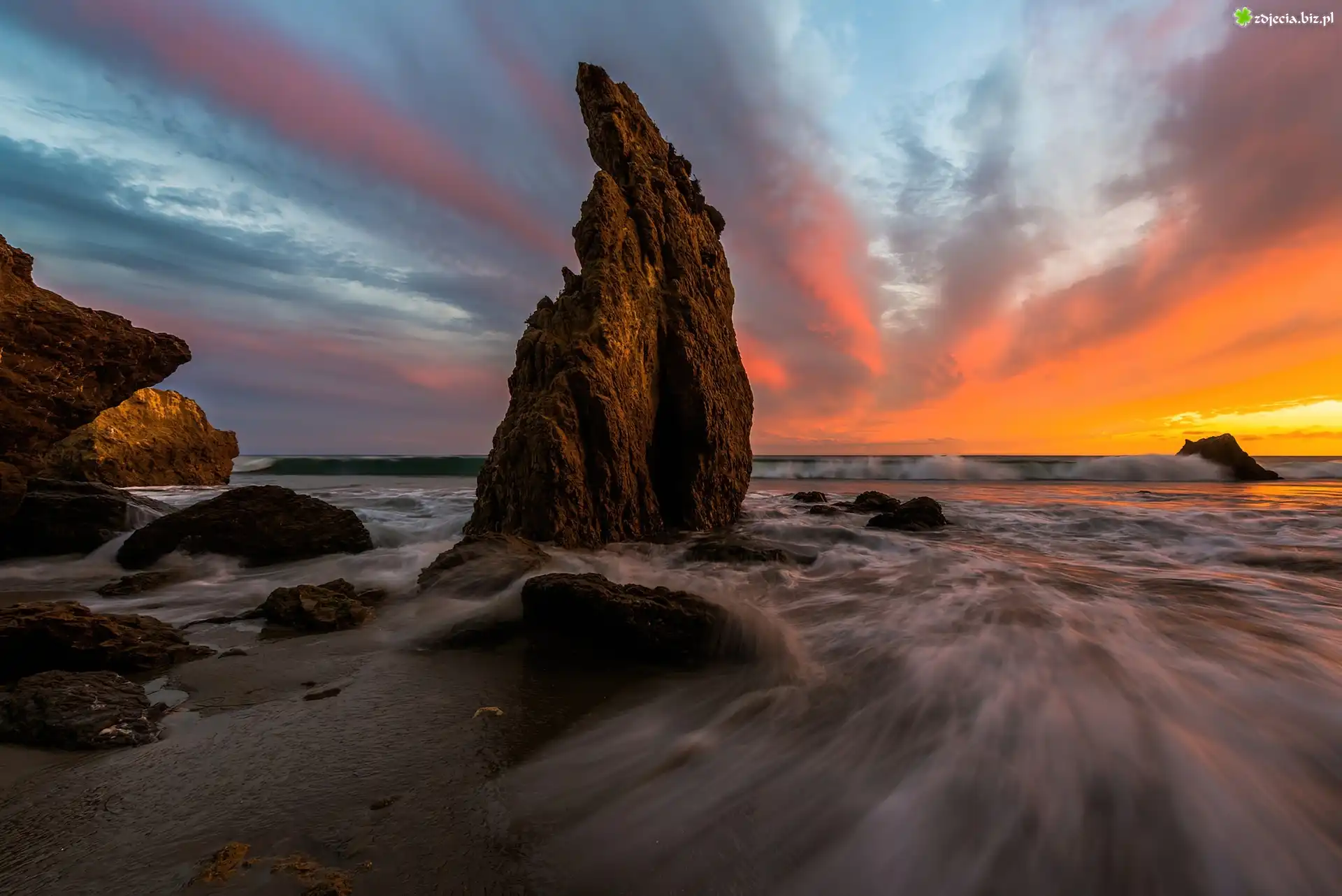 Zdjęcie, Morze, Skały, Zachód Słońca, El Matador, Kalifornia