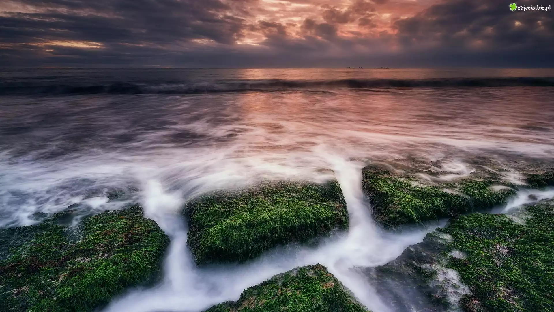 Zdjęcie Morze, Chmury, Omszałe, Skały