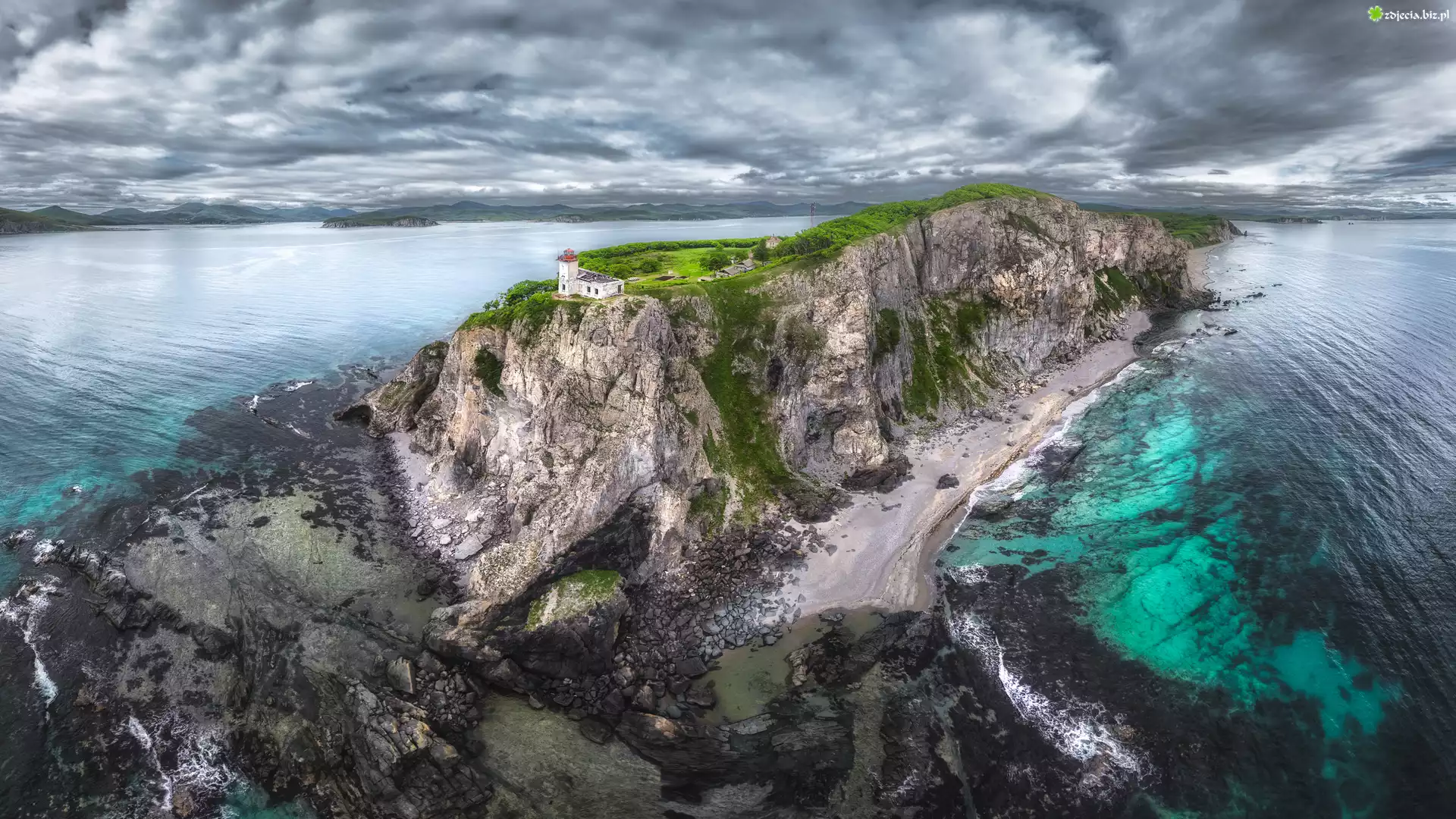 Zdjęcie Skalista, Wyspa, Morze, Skały, Chmury, Niebo