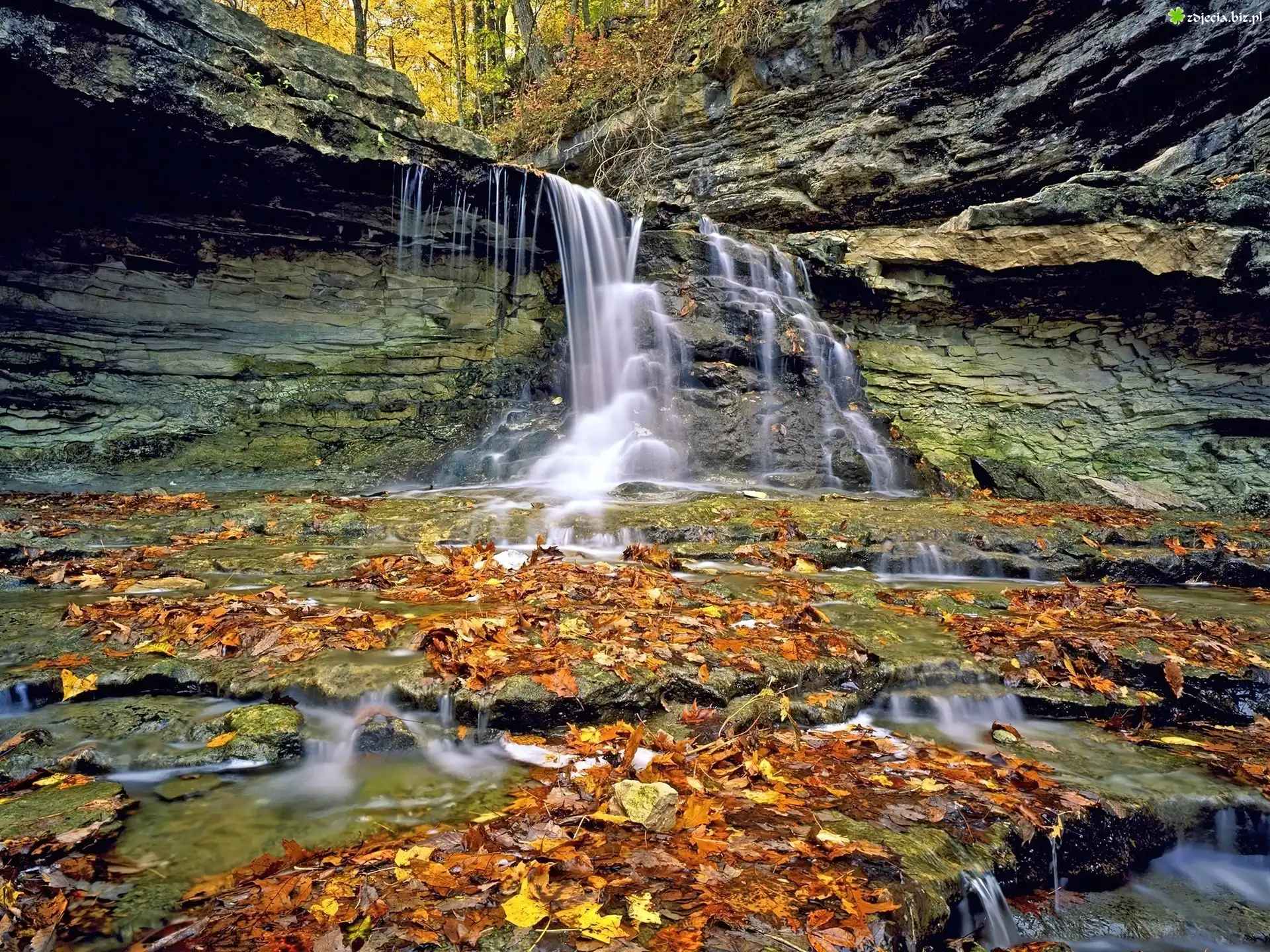 Zdjęcie Skały, Wodospad, Żółte, Liście