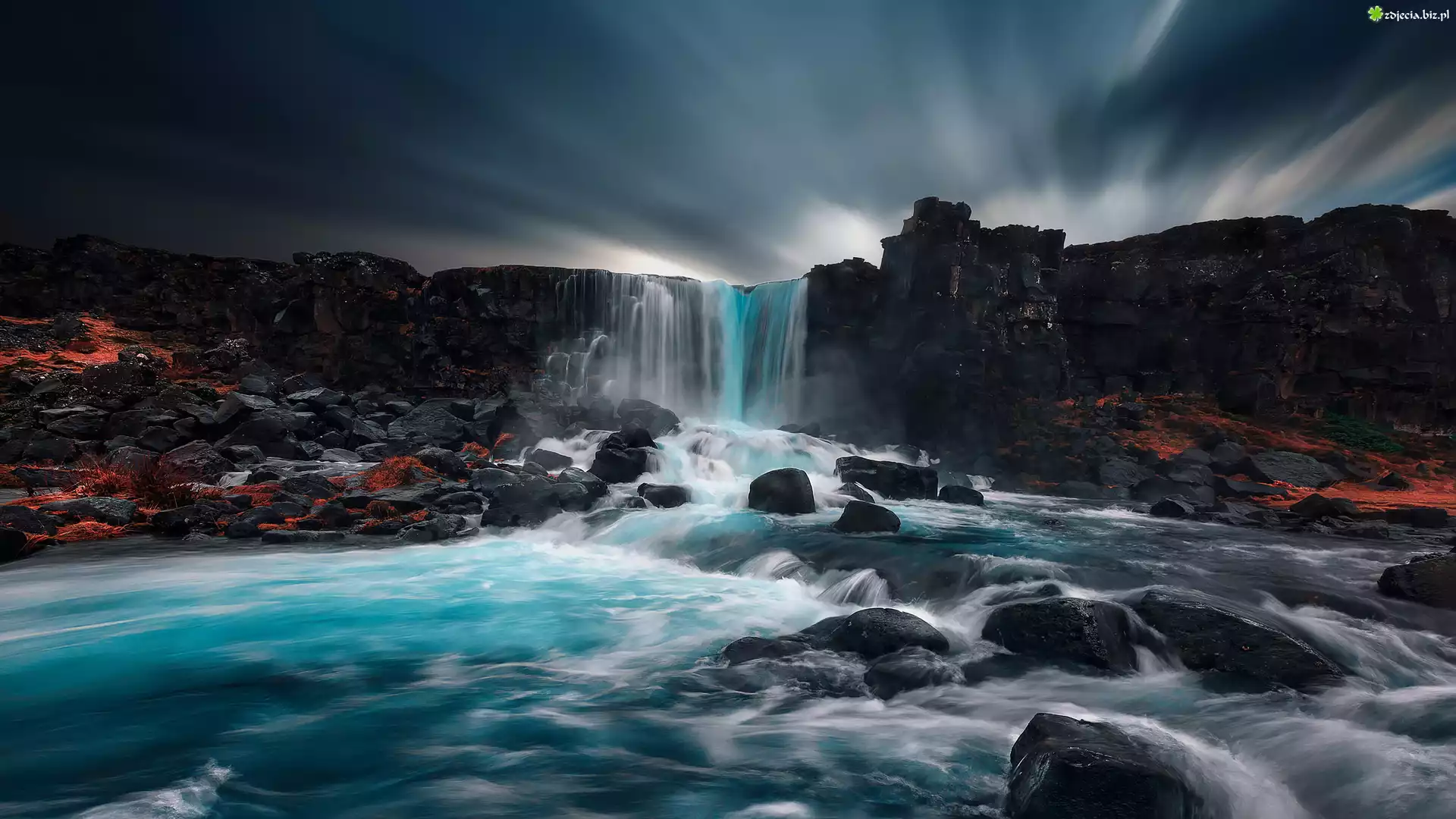 Zdjęcie Skały, Kamienie, Wodospad, Rzeka, Chmury