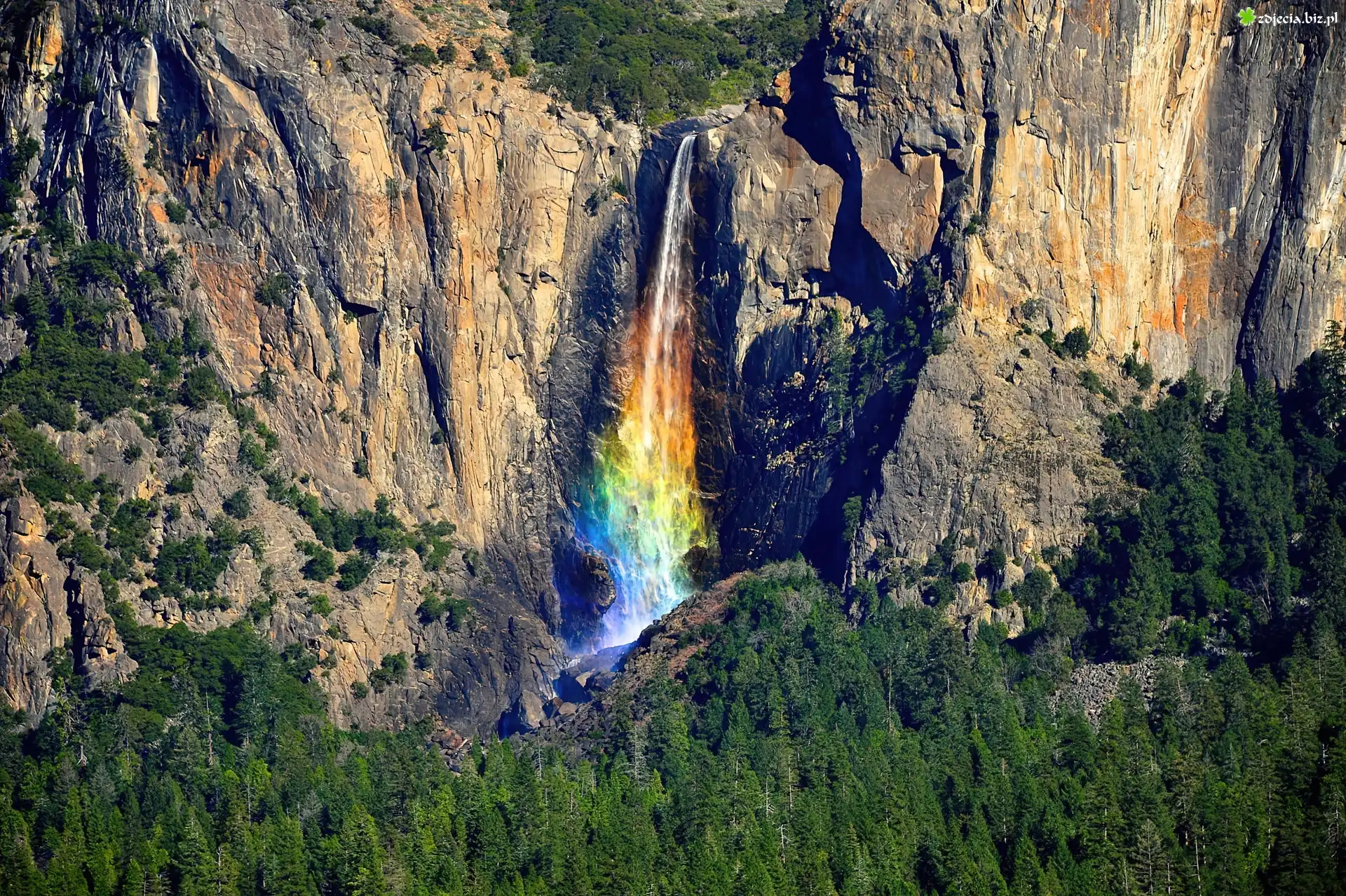 Zdjęcie, Skały, Wodospad, Tęcza, Rośliny
