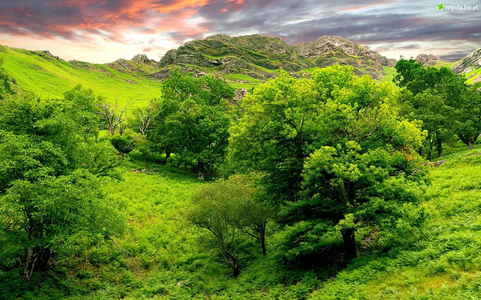 Zdjęcie Skały, Drzewa, Zielona, Dolina