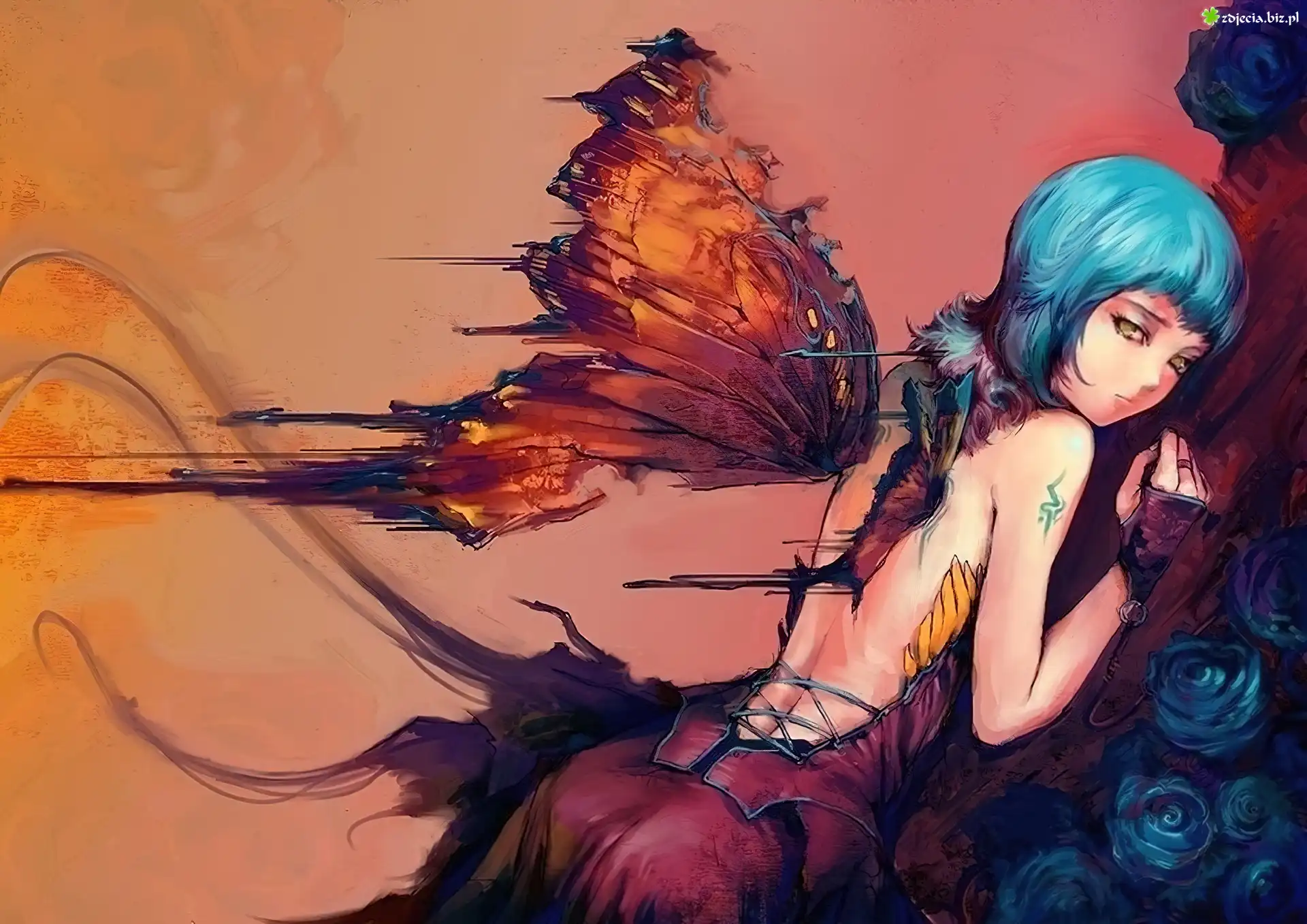 Zdjęcie Dziewczyna, Skrzydła, Motyla