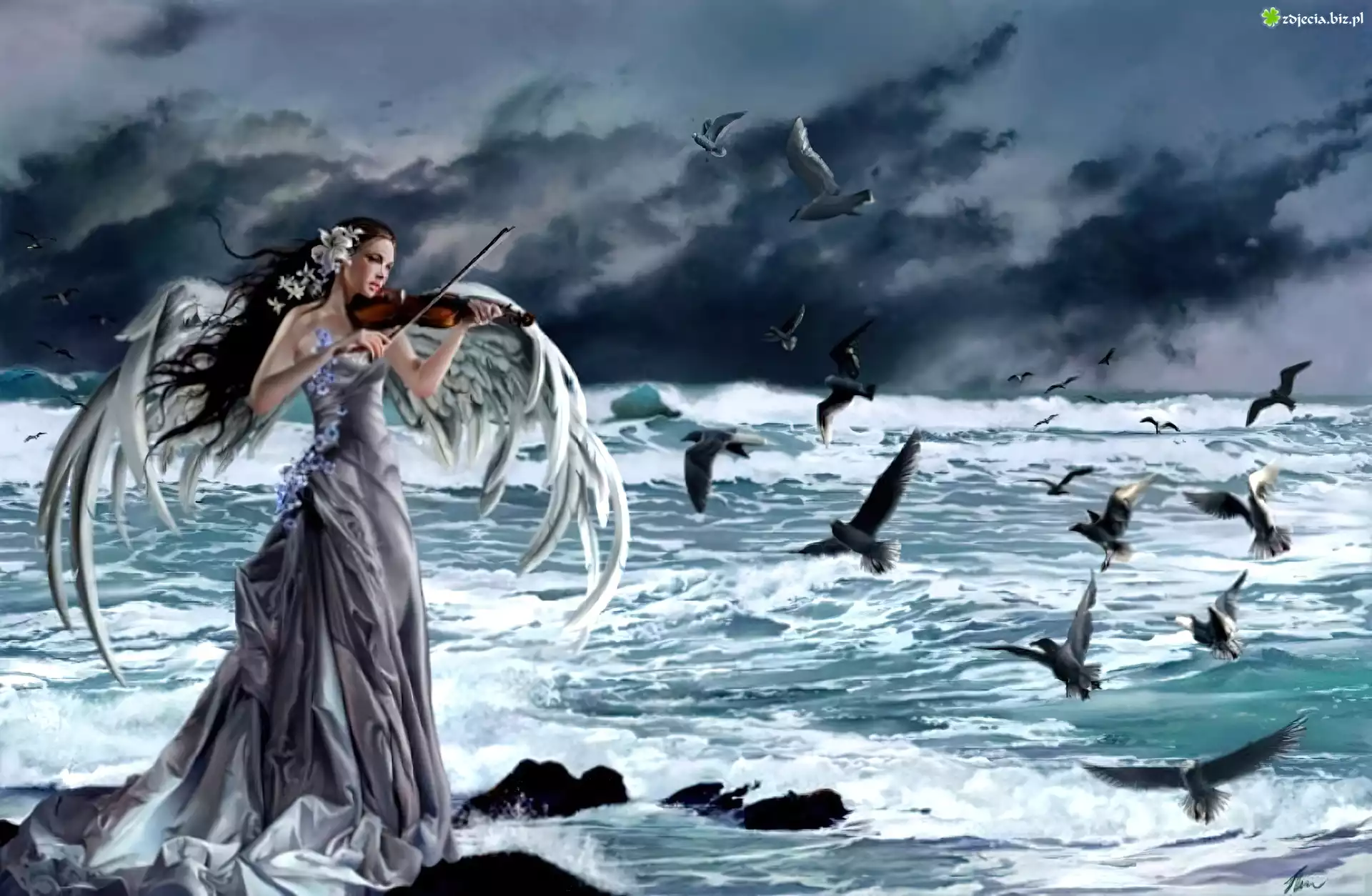 Zdjęcie Anioł, Skrzypce, Ptaki