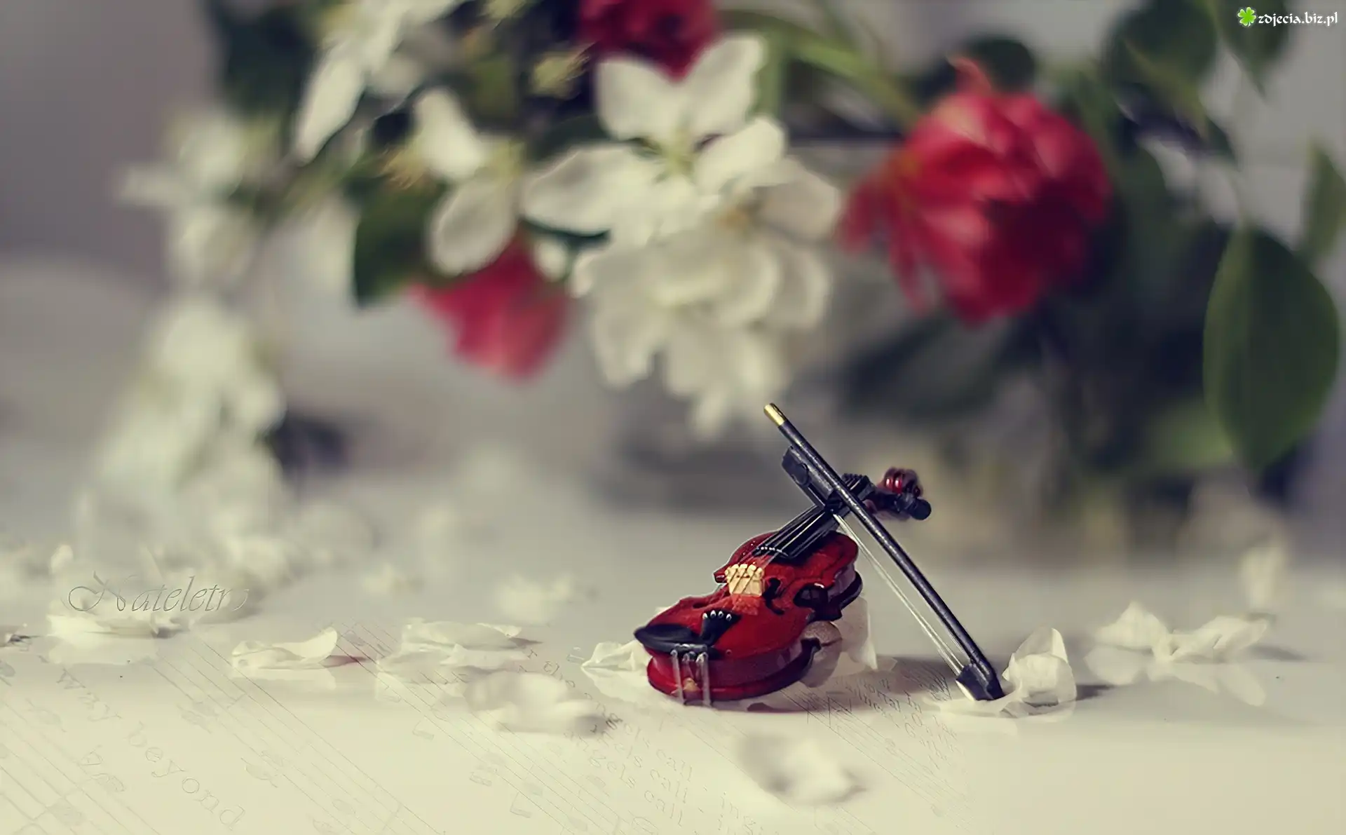 Zdjęcie Skrzypce, Czerwone, Białe, Kwiaty, Płatki