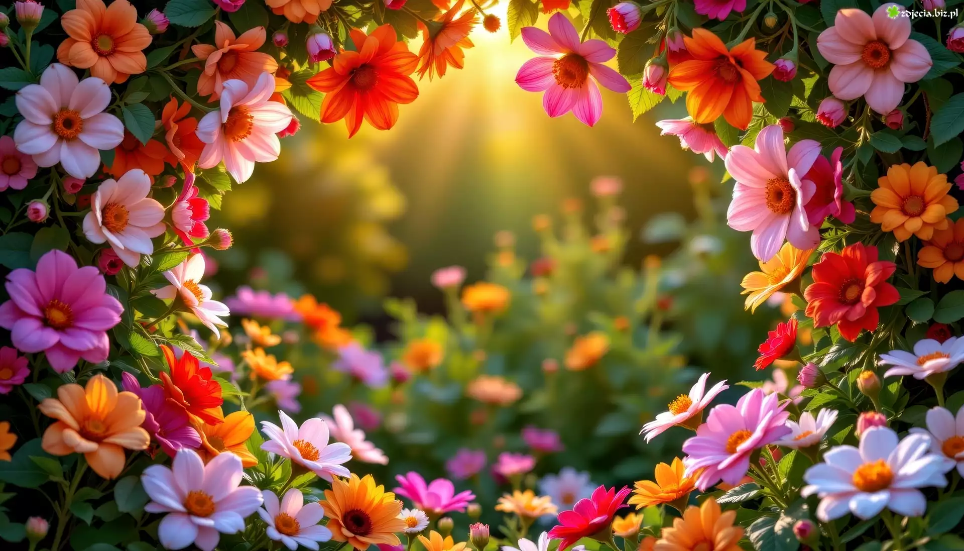 Zdjęcie Kolorowe, Kwiaty, Promienie słońca, Grafika AI