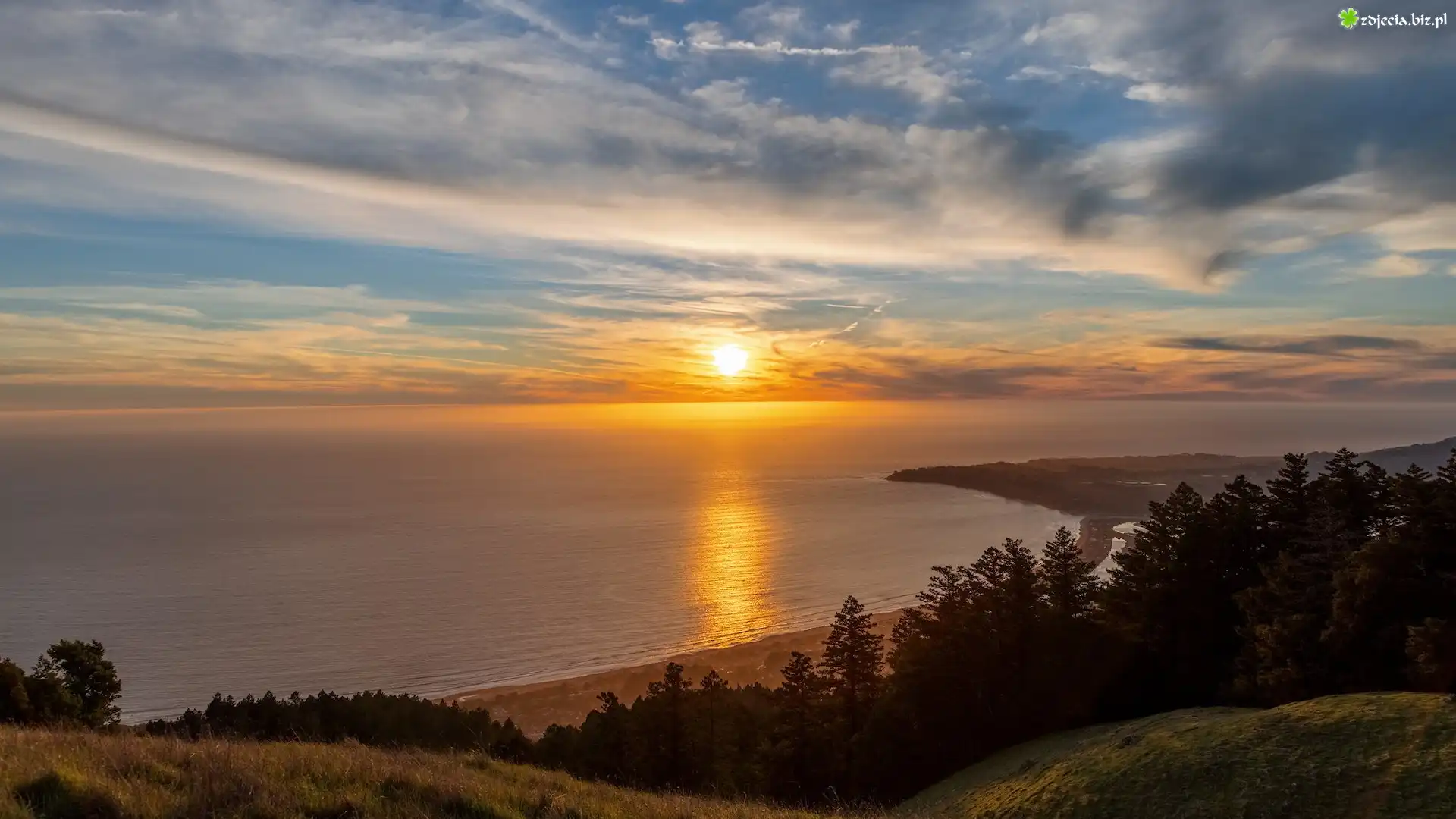 Zdjęcie Stany Zjednoczone, Kalifornia, Stinson Beach, Ocean Spokojny, Morze, Zachód słońca