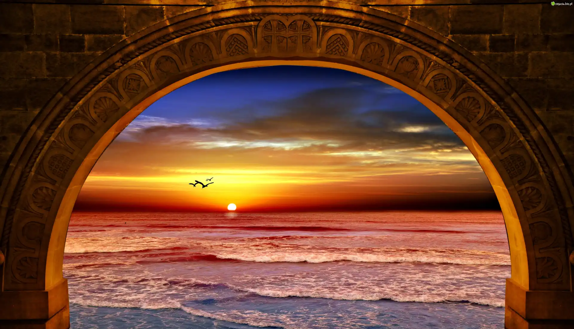 Zdjęcie Łuk, Morze, Zachód, Słońca, Ptaki