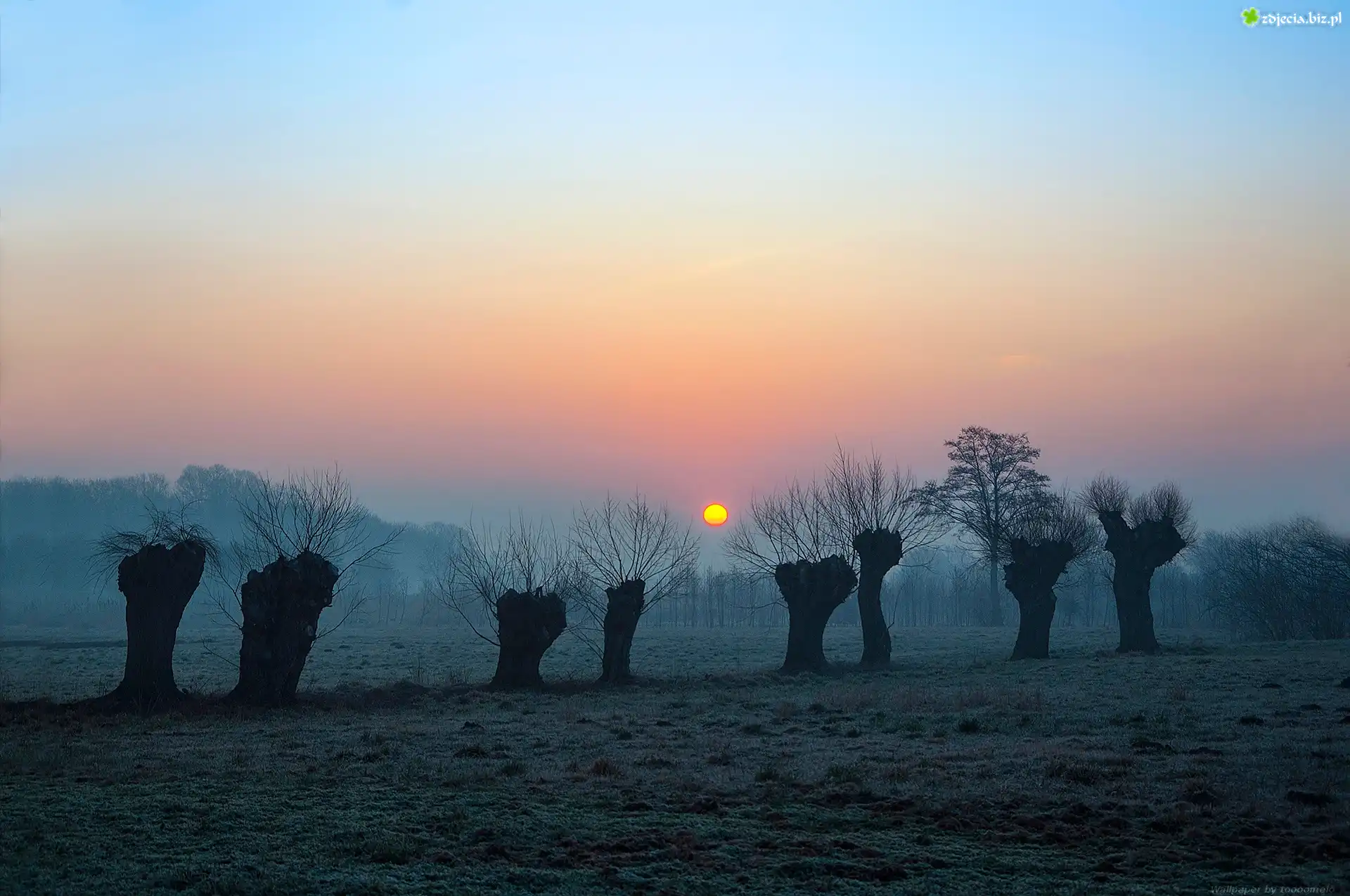 Zdjęcie, Wschód słońca, Wierzby