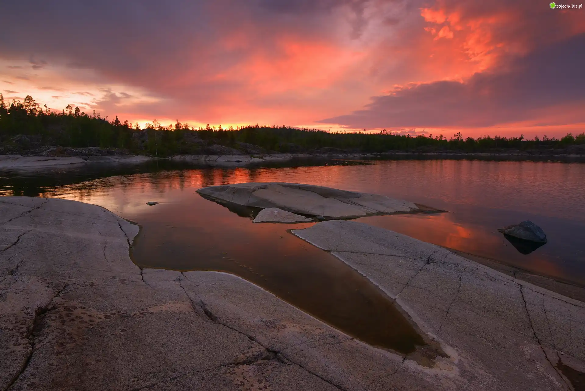 Zdjęcie Zachód słońca, Jezioro Ładoga, Skały, Karelia, Rosja