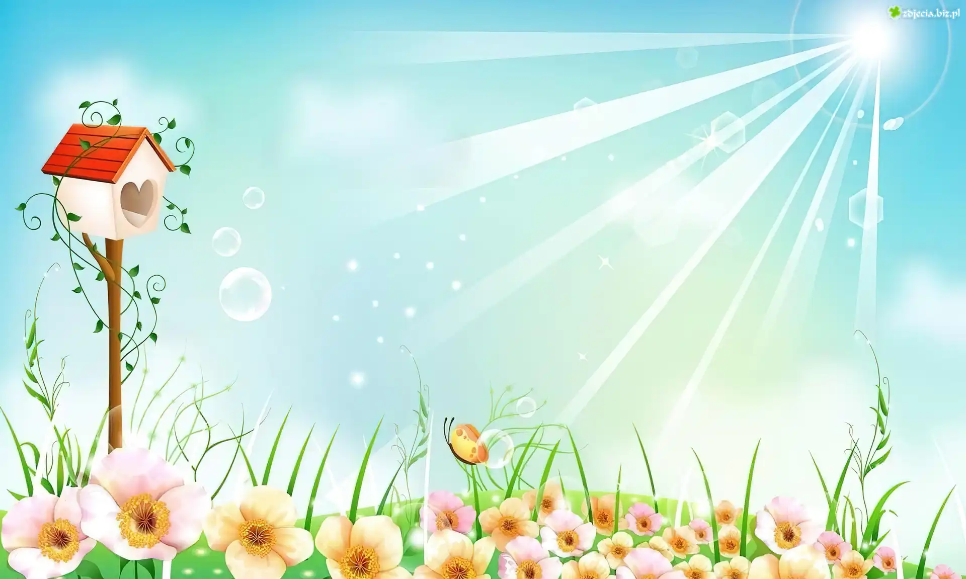 Zdjęcie Łąka, Kwiaty, Karmnik, Słońce, Promienie