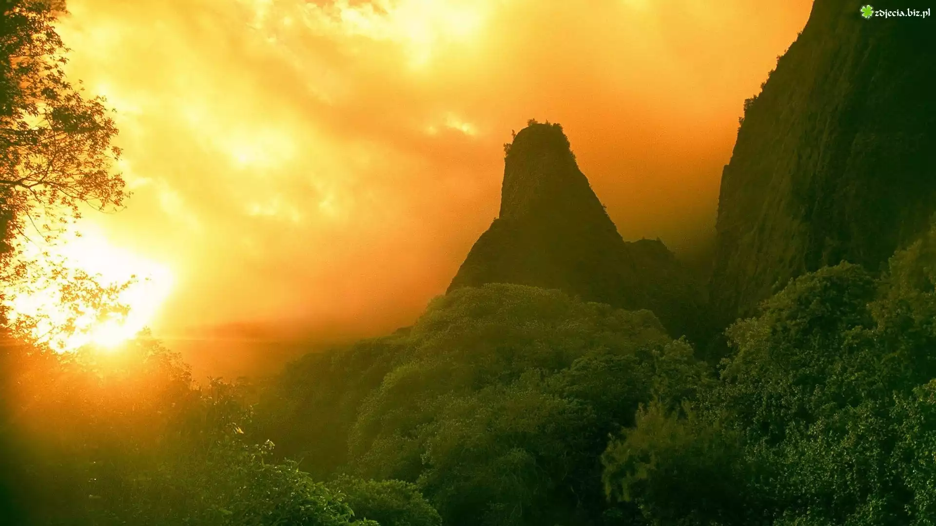 Zdjęcie Słońce, Chmury, Las, Góry