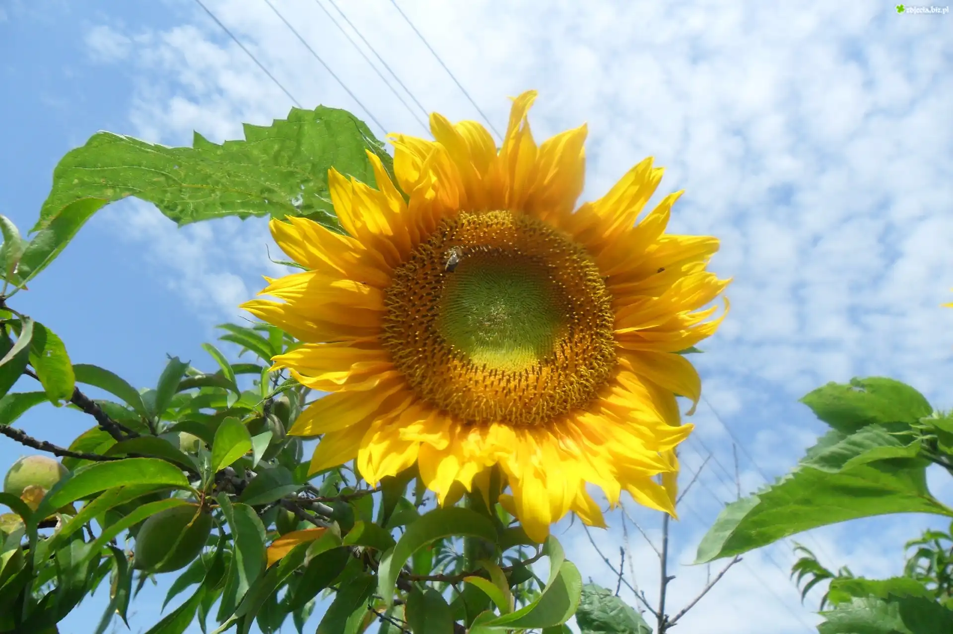 Zdjęcie, Kwitnący, Słonecznik, Niebo