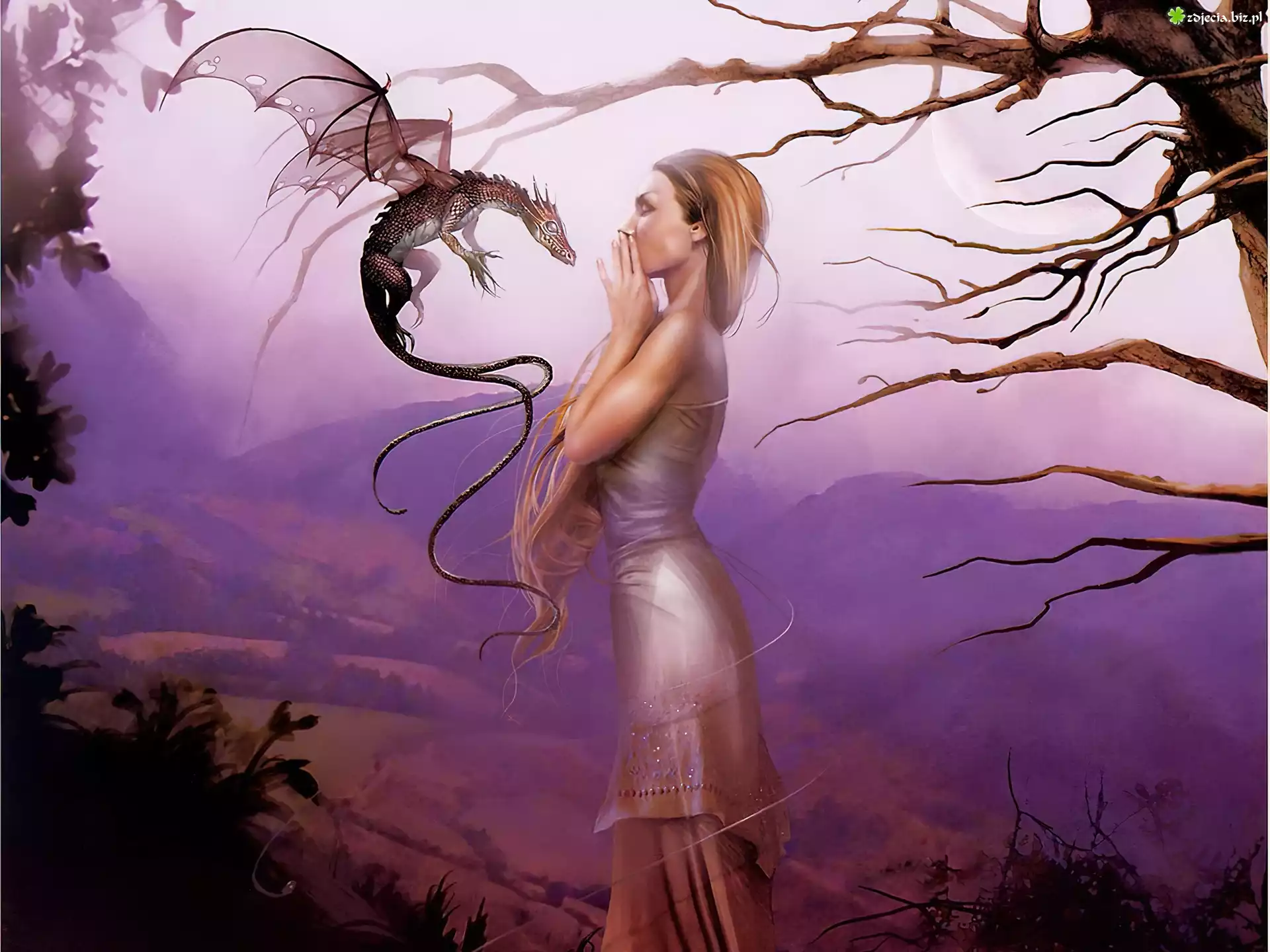 Zdjęcie Dziewczyna, Smok, Drzewo