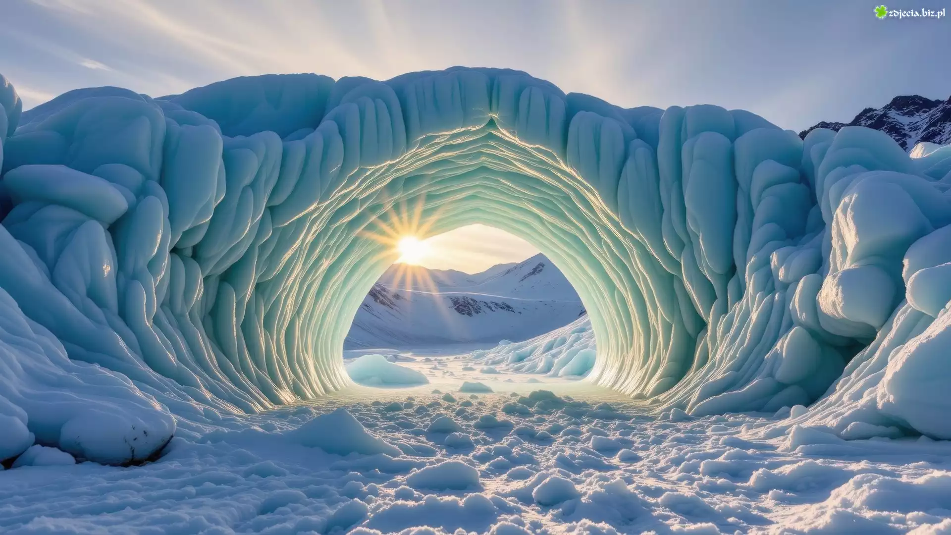 Zdjęcie Zima, Promienie słońca, Śnieg, Łuk, AI